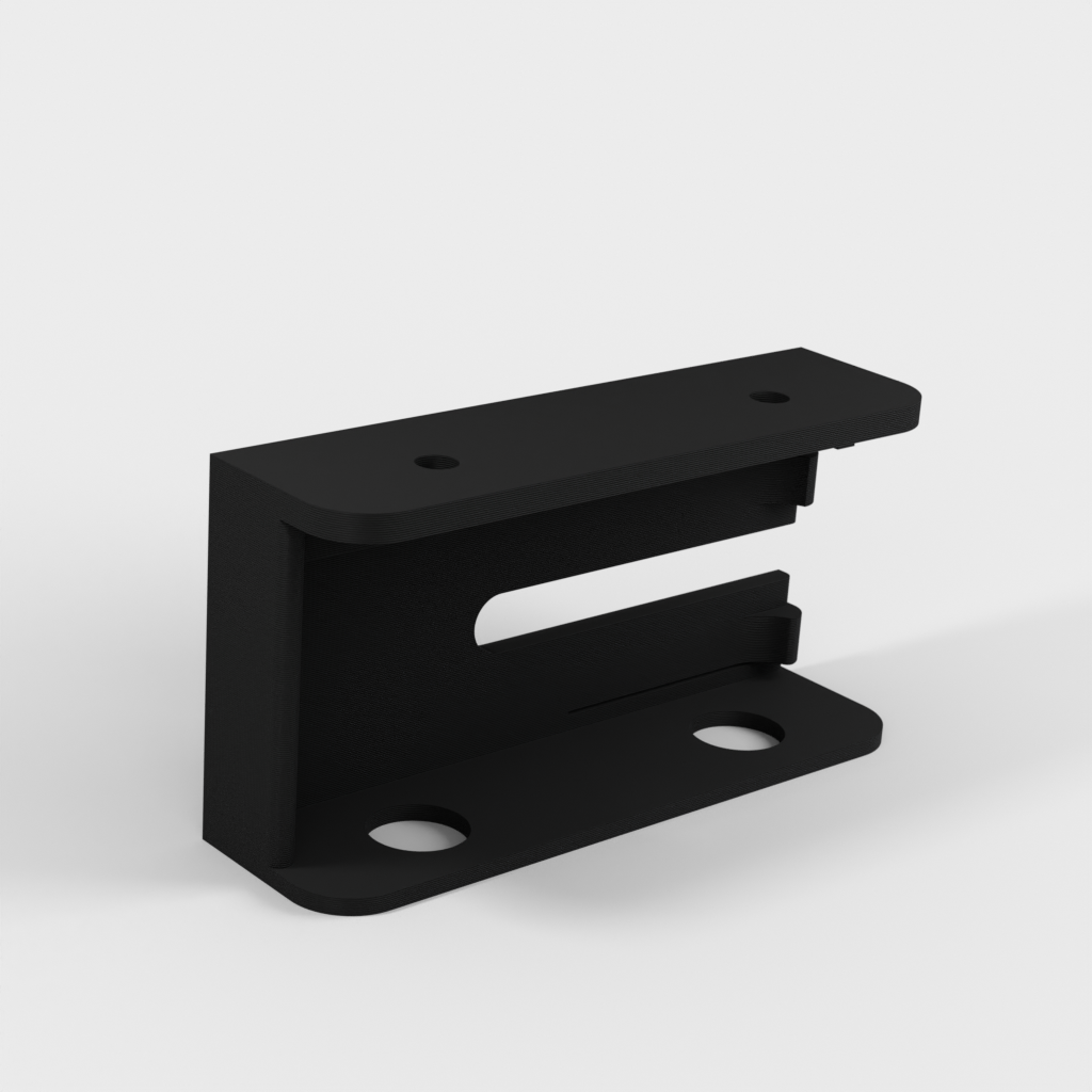 Wall mount for a Dell D6000 dock holder, allowing it to be mounted on a wall with the connectors facing downwards. Improve your workstation by organizing and freeing up space by securely mounting your dock to the wall.