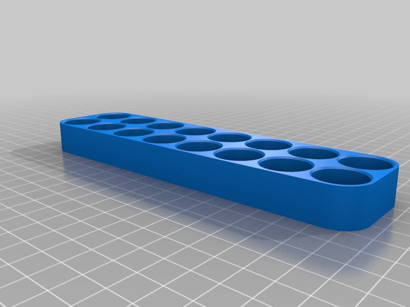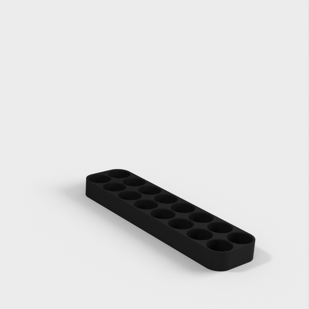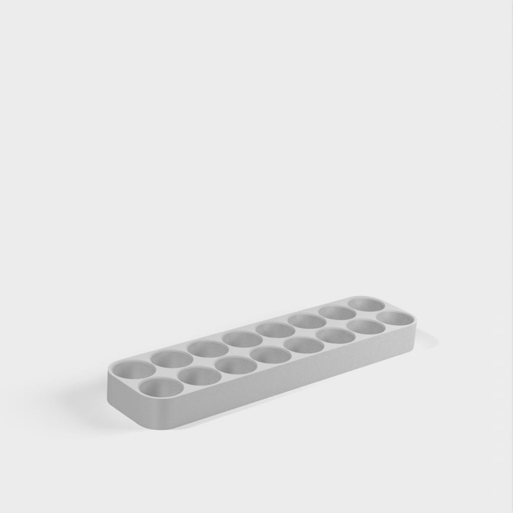 This is a simple 18650 battery holder for shelf or table storage. The design is adjustable using OpenSCAD, so dimensions, safety margin, and the number of batteries can be customised as needed. The attached stl file is designed for 16 batteries.