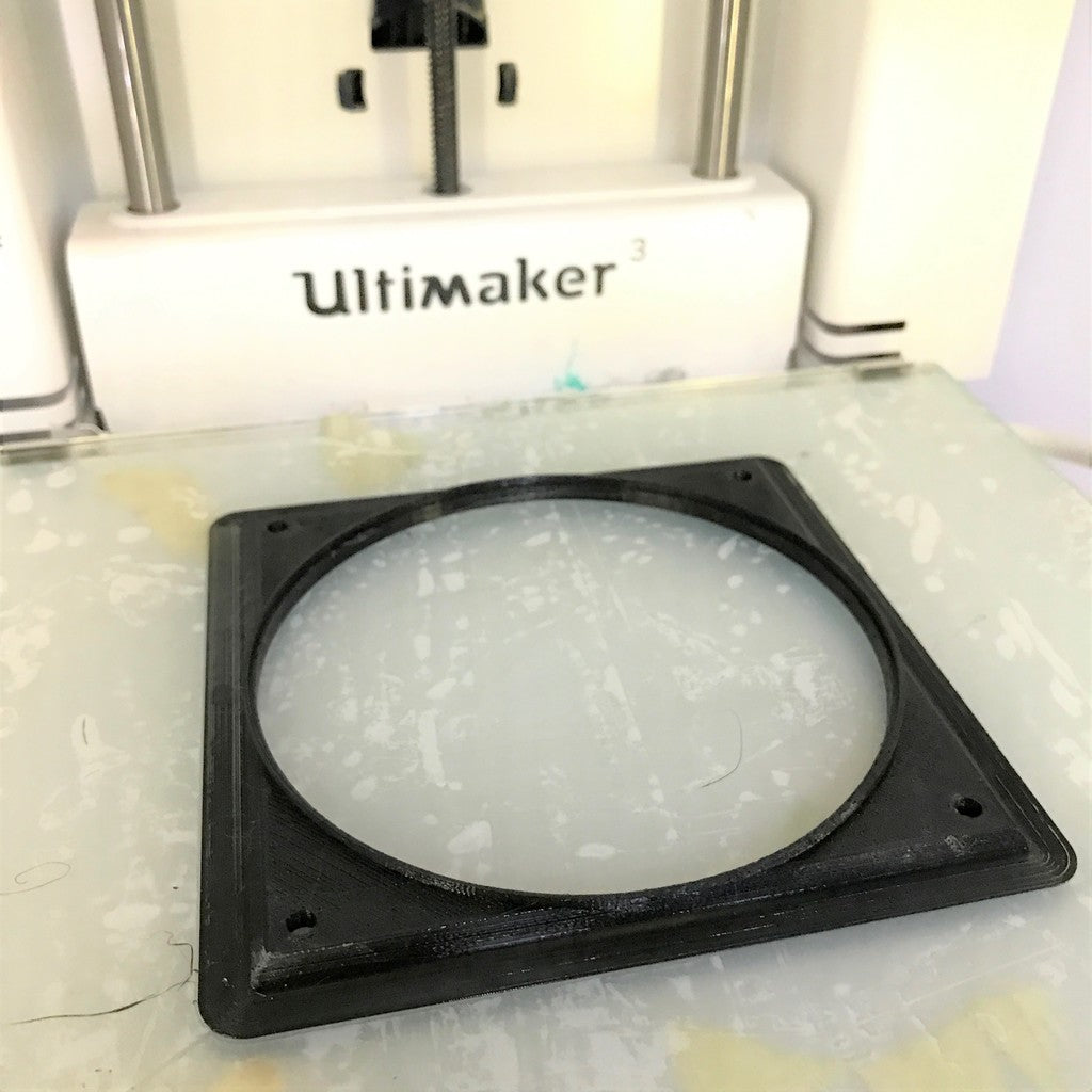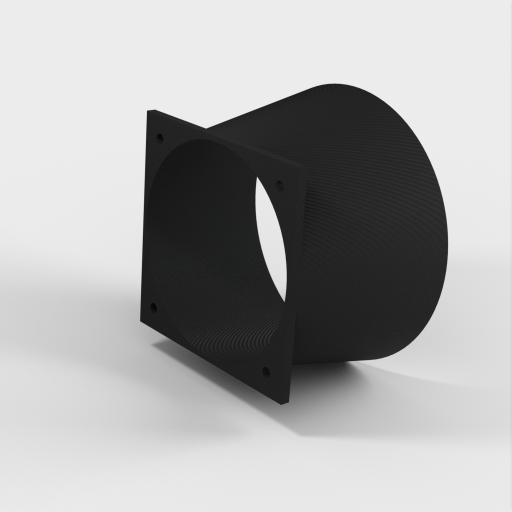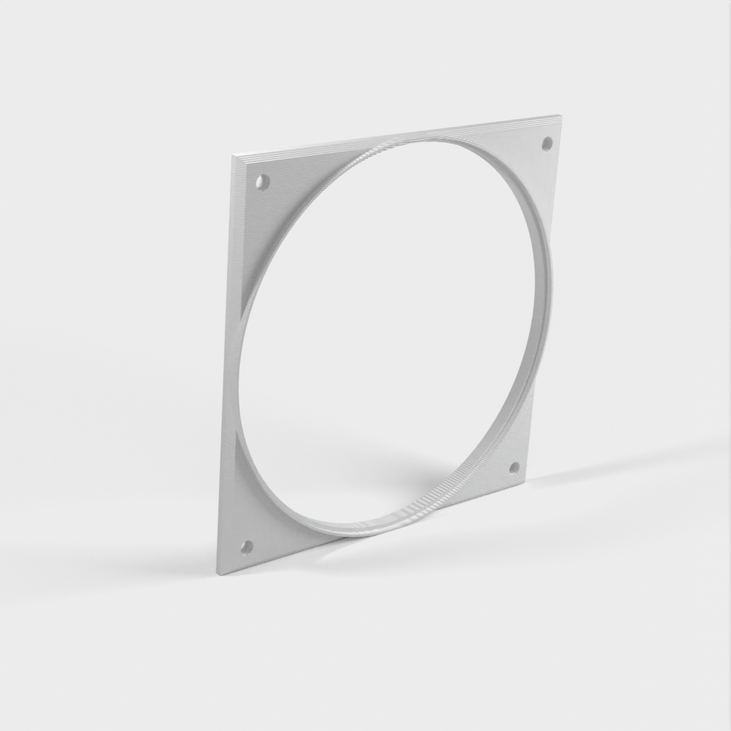 Make sure you have enough space as it might collide with tall RAM sticks. This 3D model is printed in two parts, the 120mm part has a ring and the 92mm part has a cone, both of which should be oriented upwards.