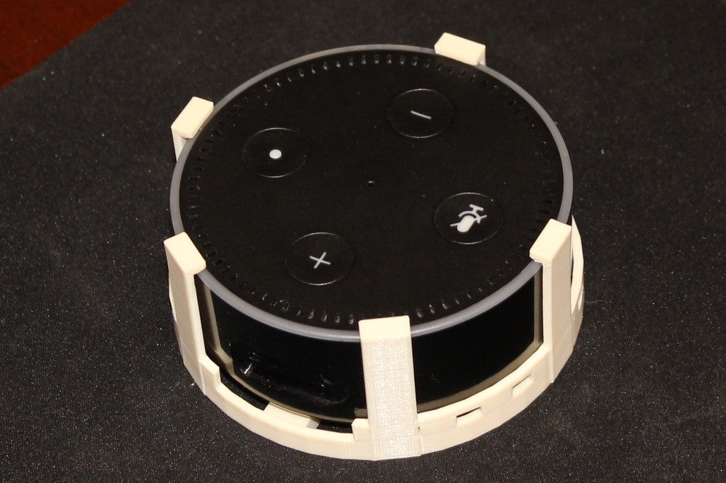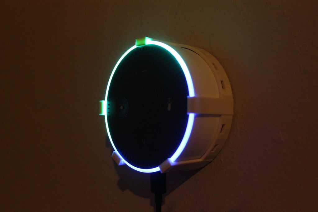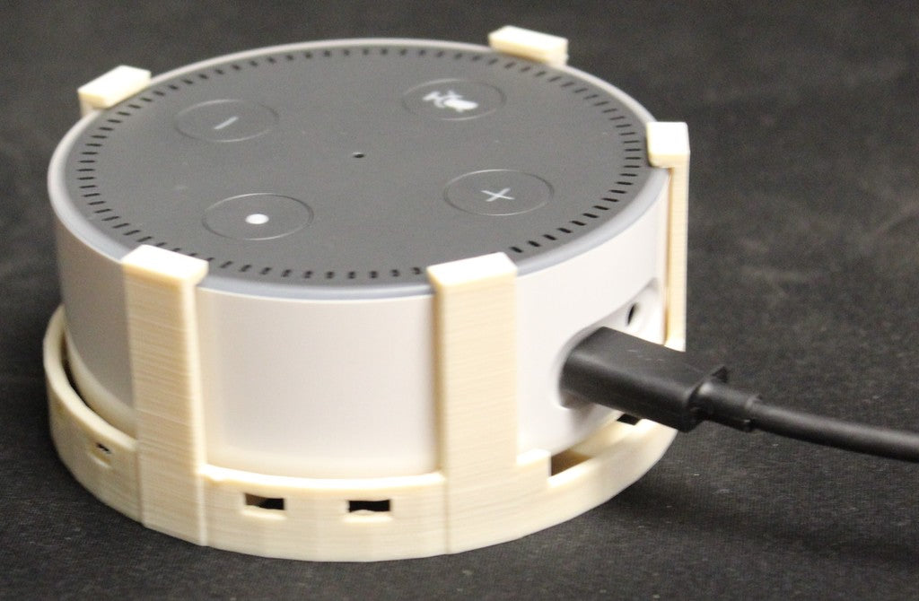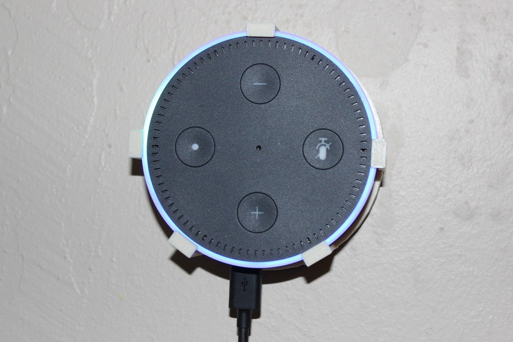 This is a wall mount for an Amazon Echo Dot. It can function as both a wall and ceiling mount and holds the device securely in place. The mount fits the following dimensions (in metric units) for the Amazon Echo Dot: