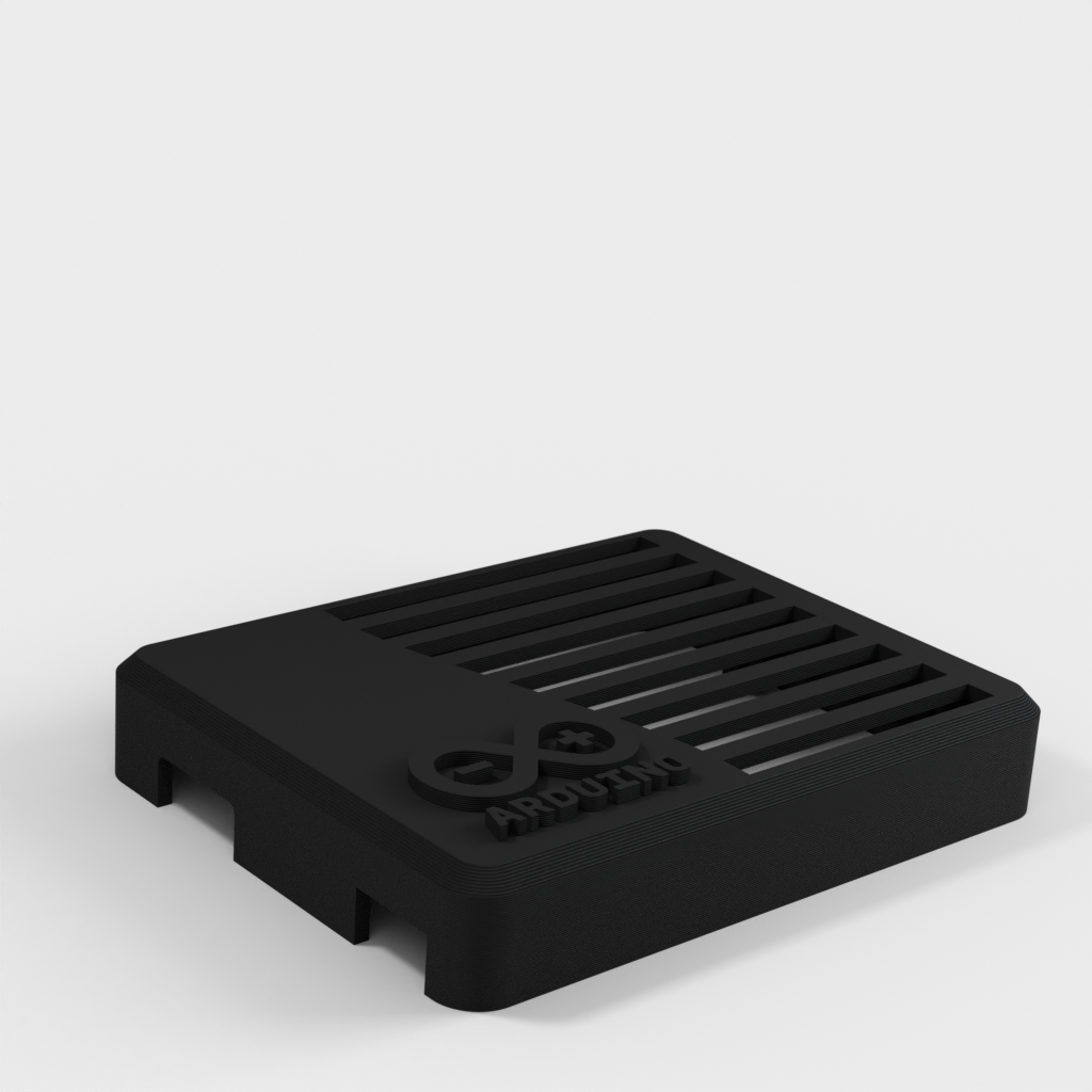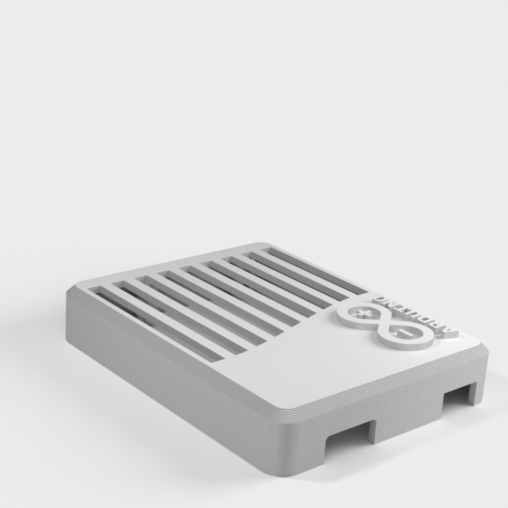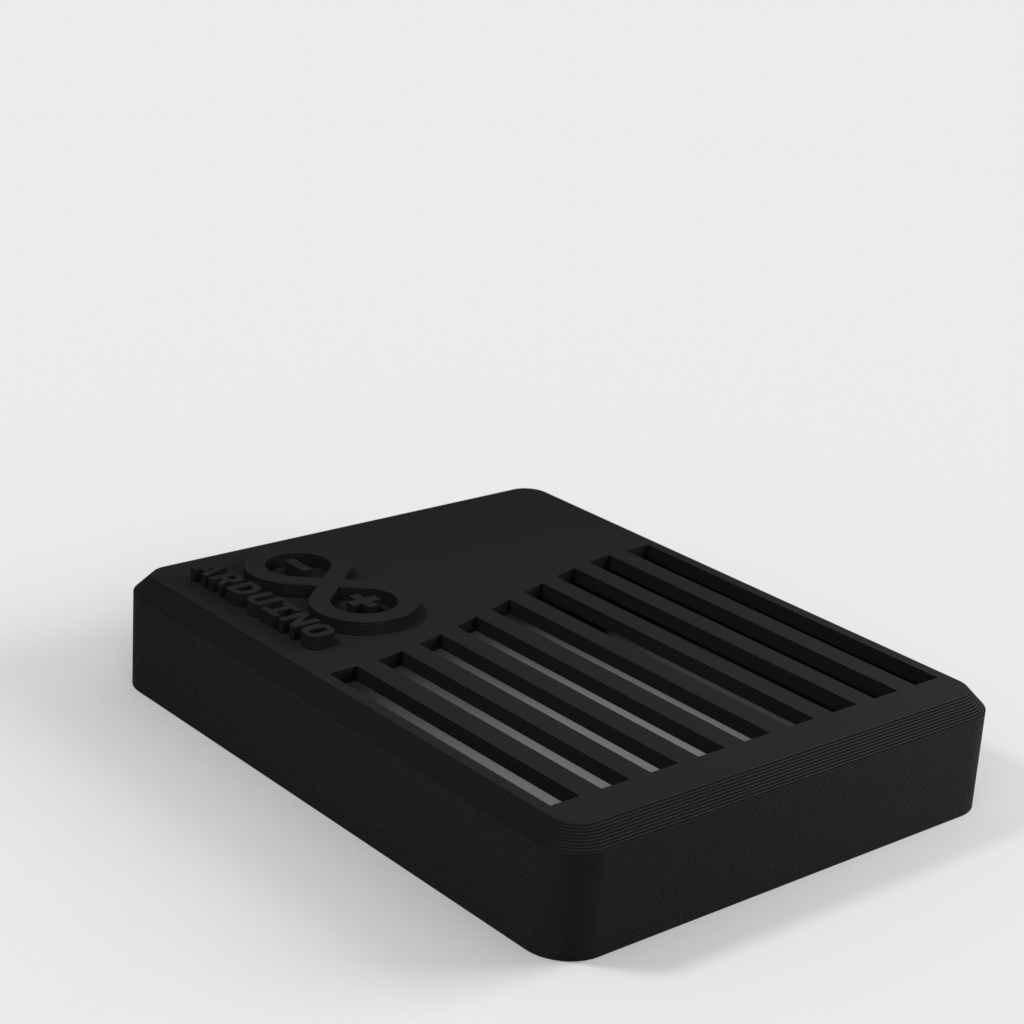 This is a case for the Arduino UNO based on Taylor Stein's design. The case is equipped with the official Arduino logo. It is perfect for protecting your Arduino UNO board and adds a stylish twist to your project.