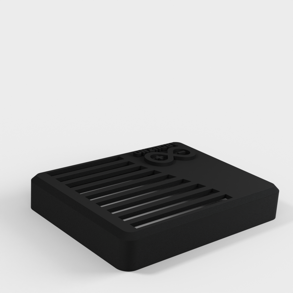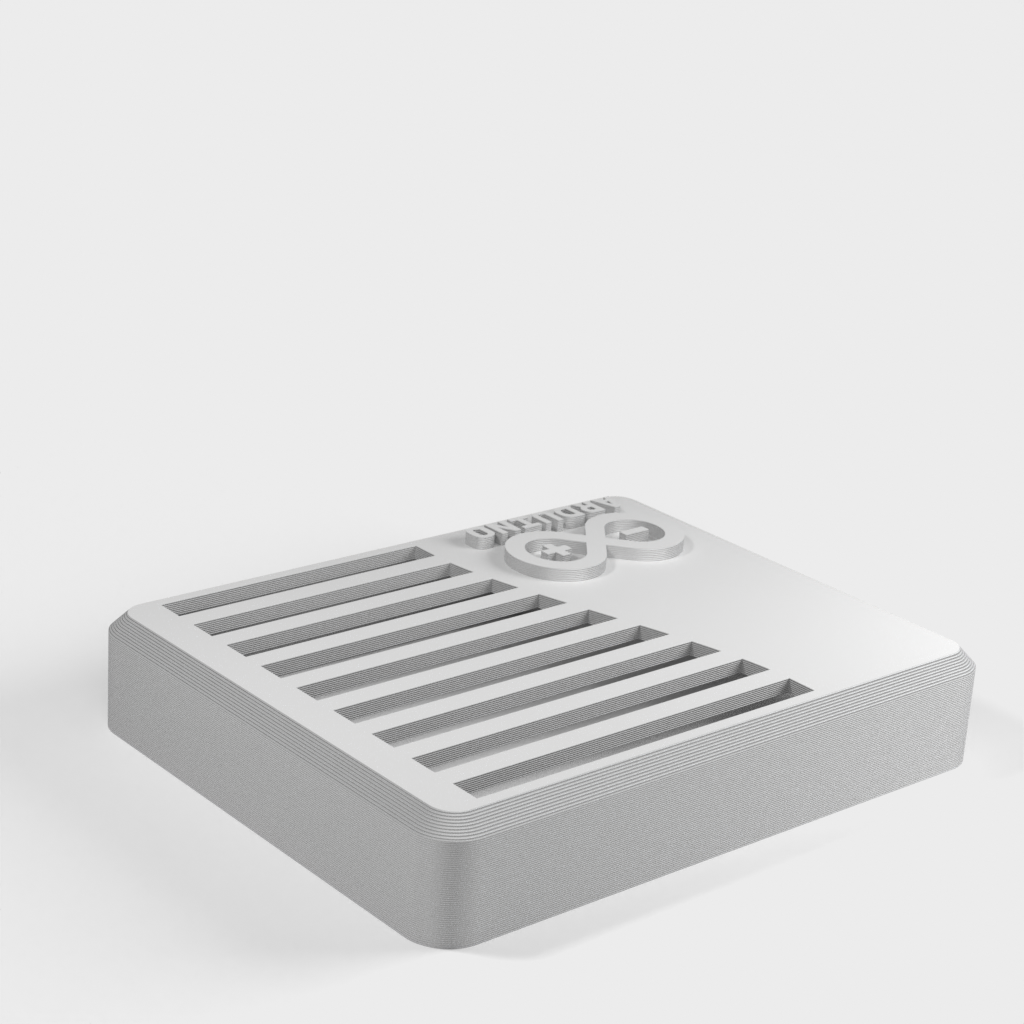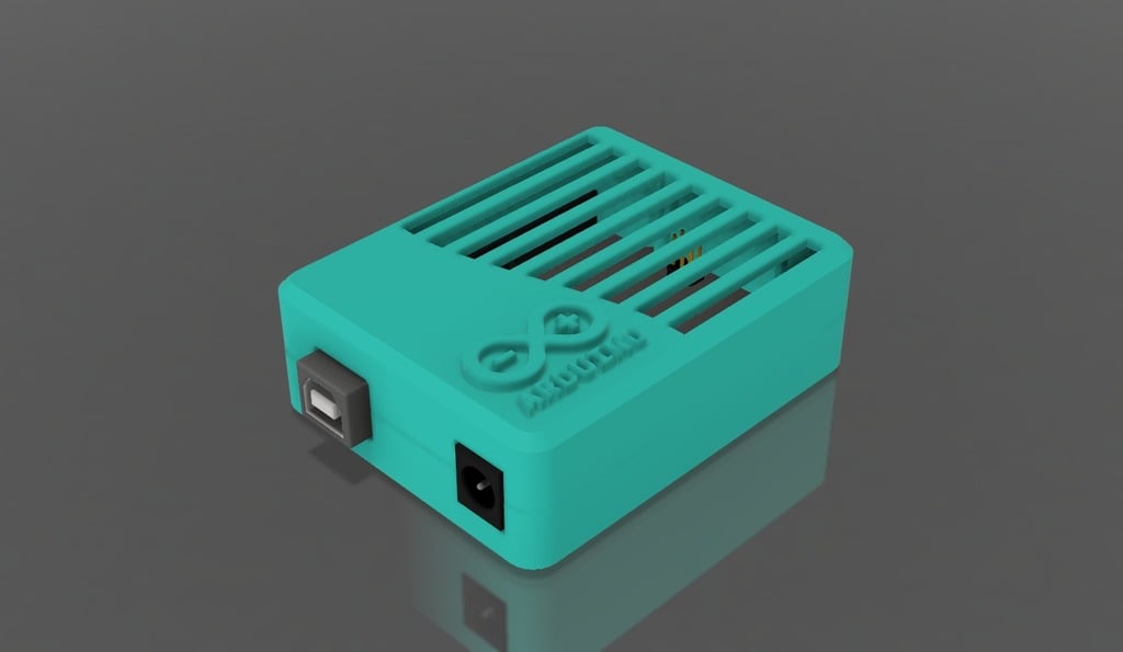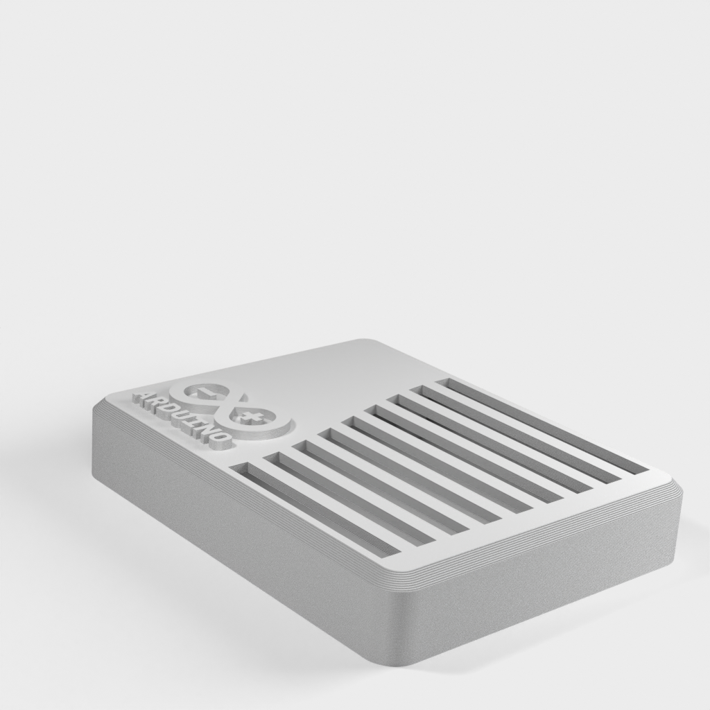 This is a case for the Arduino UNO based on Taylor Stein's design. The case is equipped with the official Arduino logo. It is perfect for protecting your Arduino UNO board and adds a stylish twist to your project.