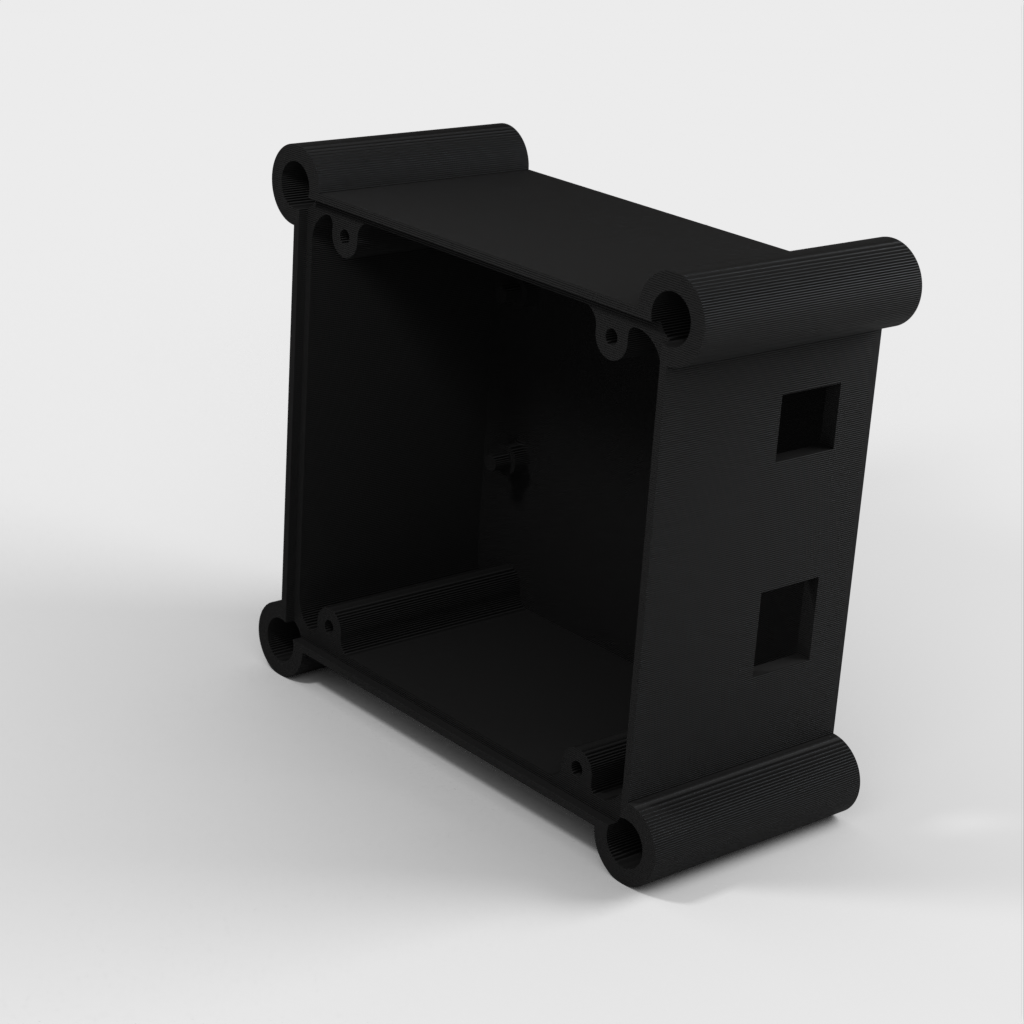 Arduino Uno project box designed to house an Arduino Uno and a shield (or two, depending on thickness). The image shows a version with an aluminum lid, but a printed lid is included if you do not need to dissipate heat.