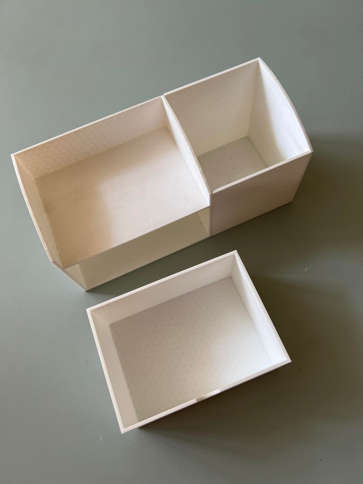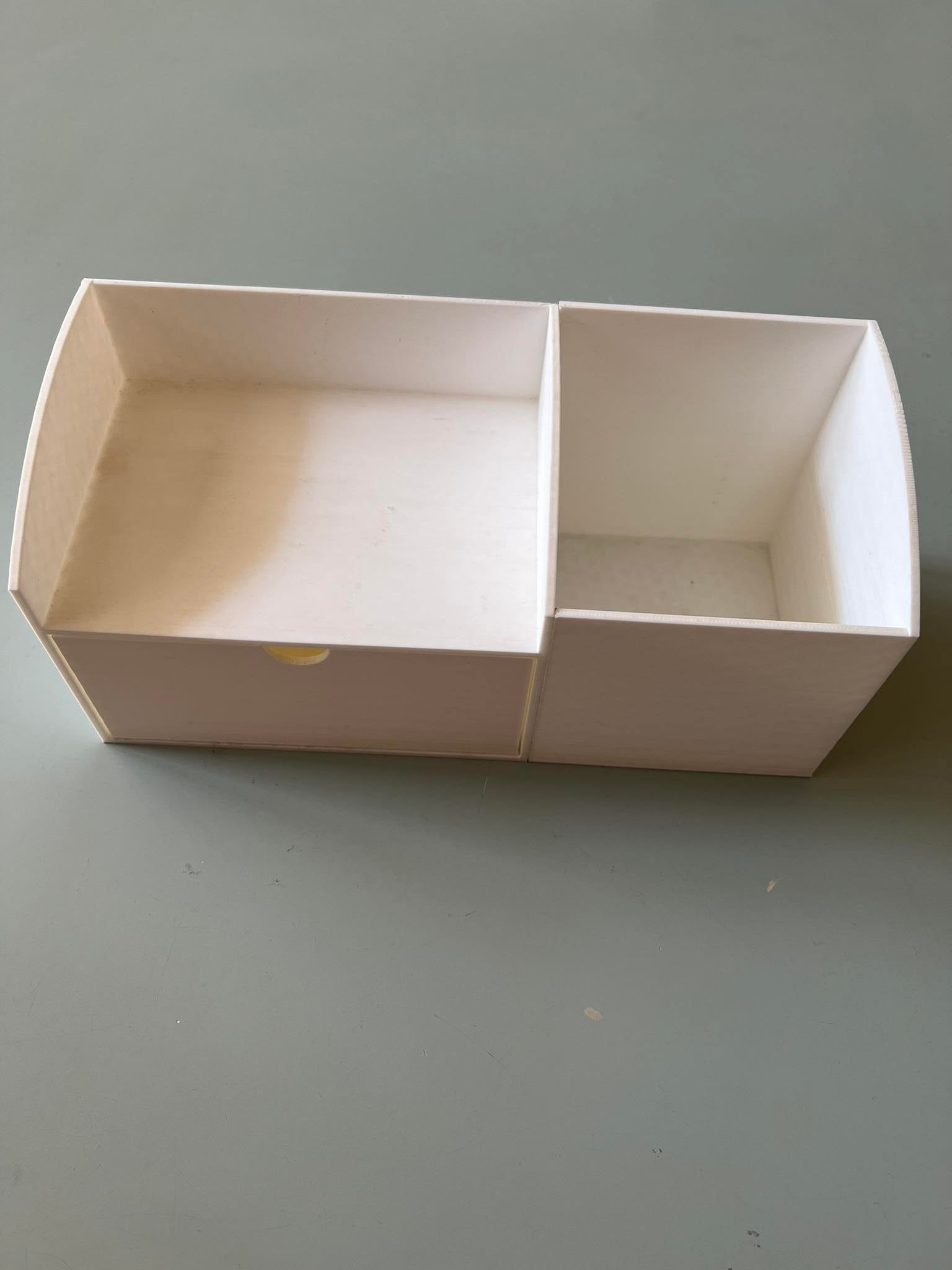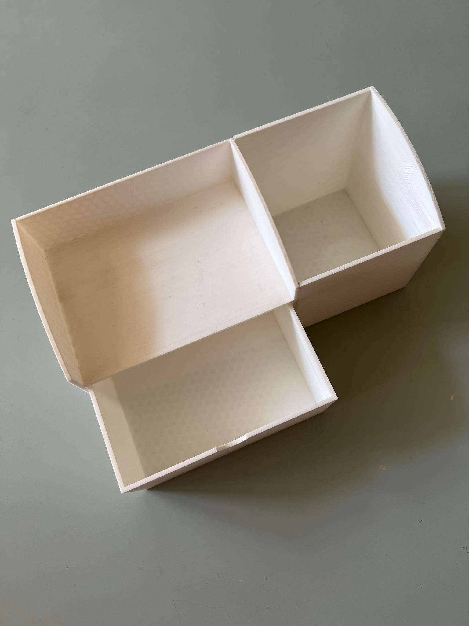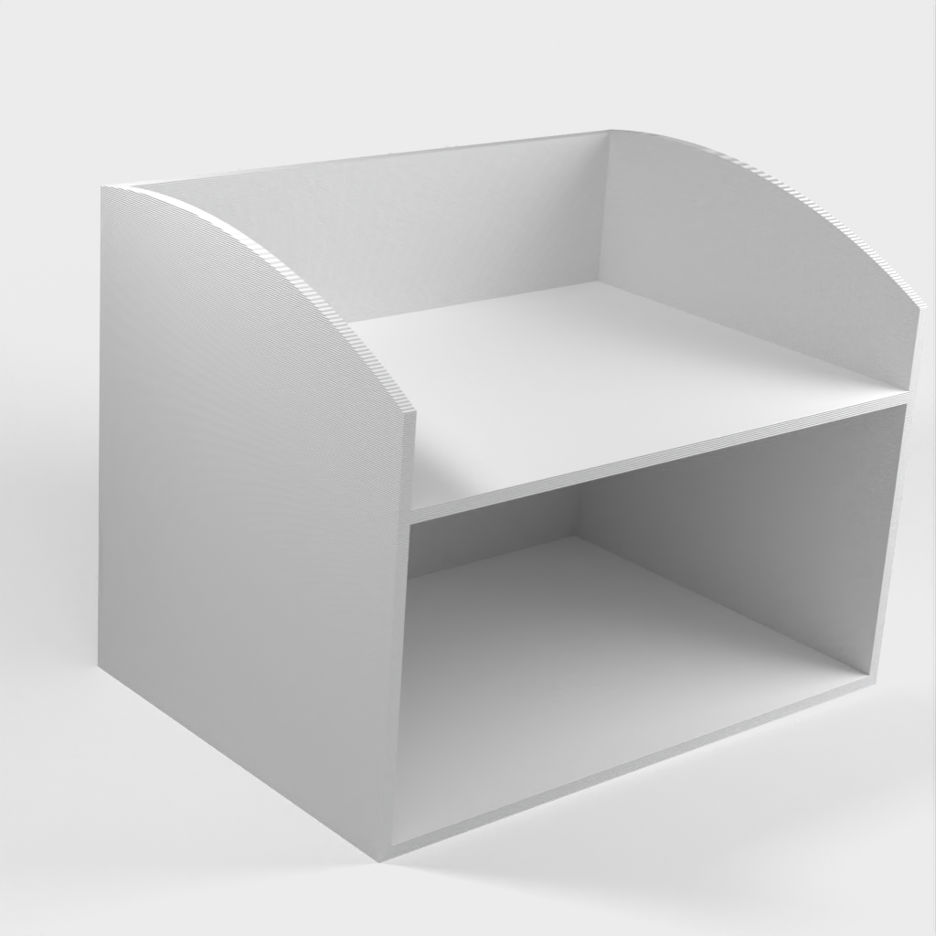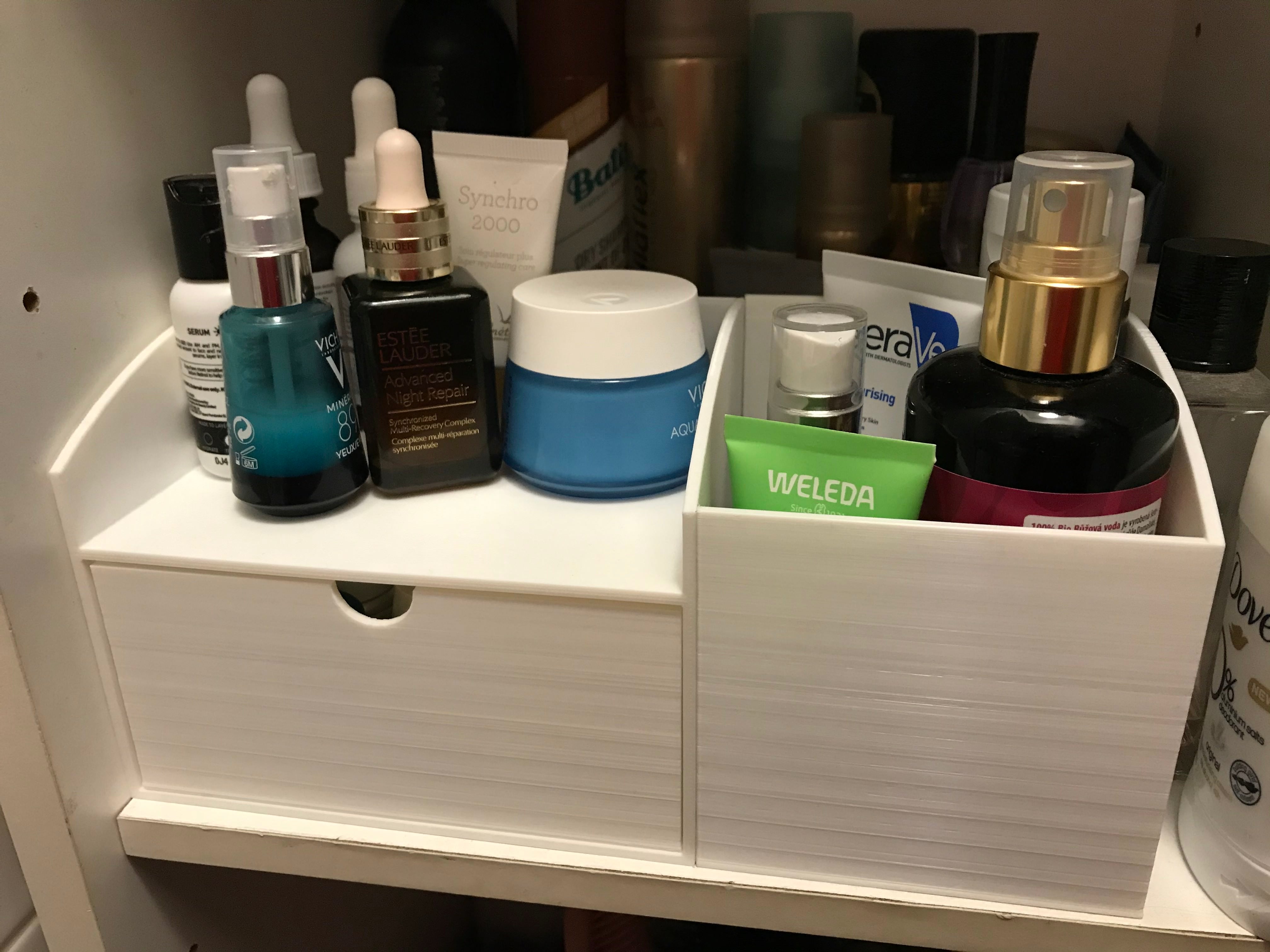 This is a bathroom organizer printed with PLA. Printed with 0.2 mm layer height, 0.4 mm nozzle, 20% infill, and no supports are needed. Each part is printed separately and then glued together. Printed on an Ender 3v2.