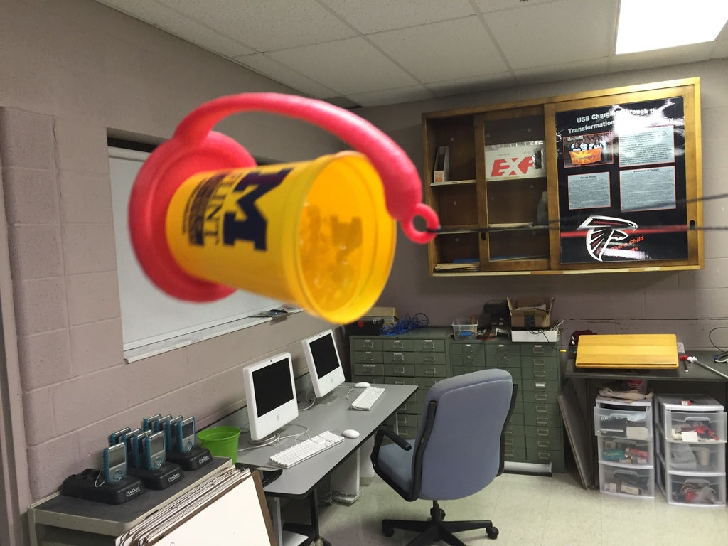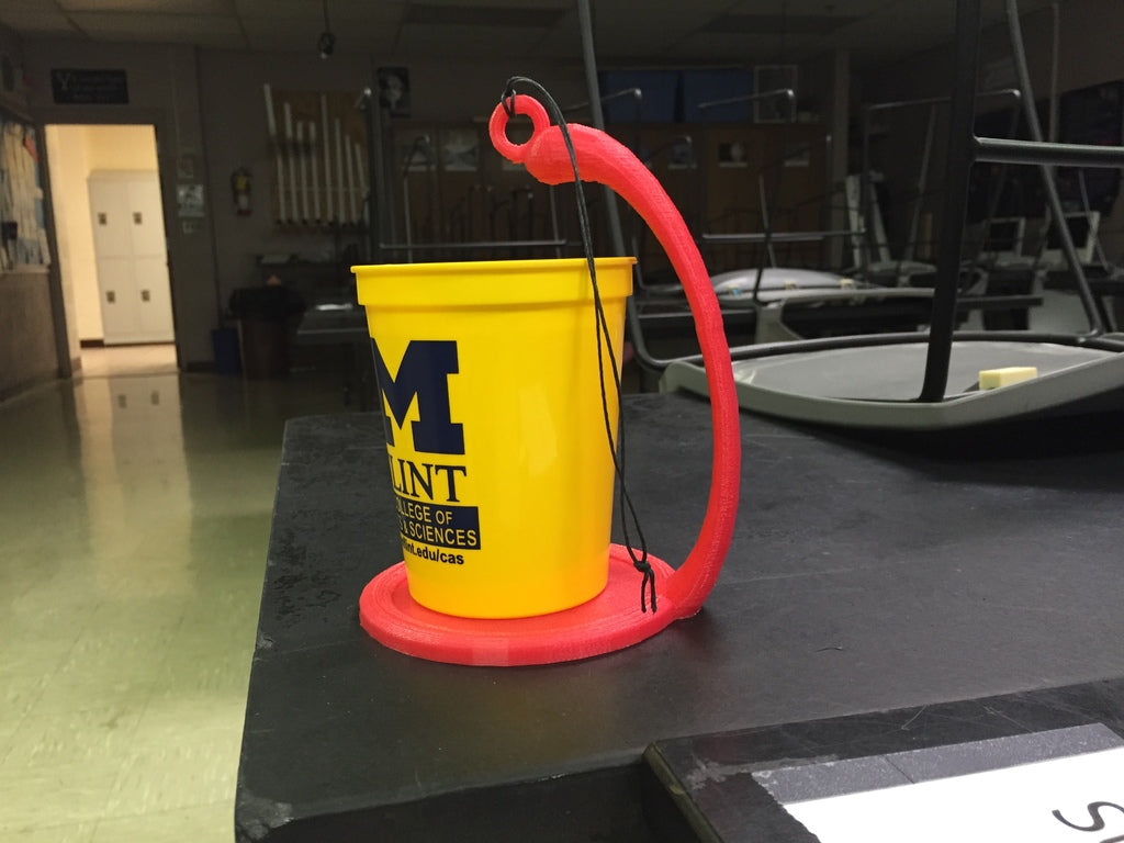 The Centripetal Force Demonstrator is a fantastic way to illustrate the principles of physics and engineering. It is designed to fit a standard coffee cup (83 mm in diameter, 110 mm high) and is used by swinging it around with a full cup of water or coffee without the risk of spillage. With a little practice, you can swing this in large vertical circles or even horizontal circles above your head. It should be noted that you need to tie a string or strap to the ring.
