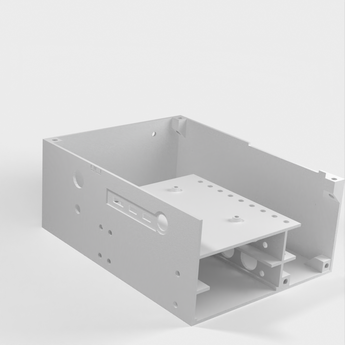 Desktop case for Raspberry Pi 4B with built-in space for a 5V 4A power supply and up to 2 SATA drives. There is also storage space for your own equipment.
