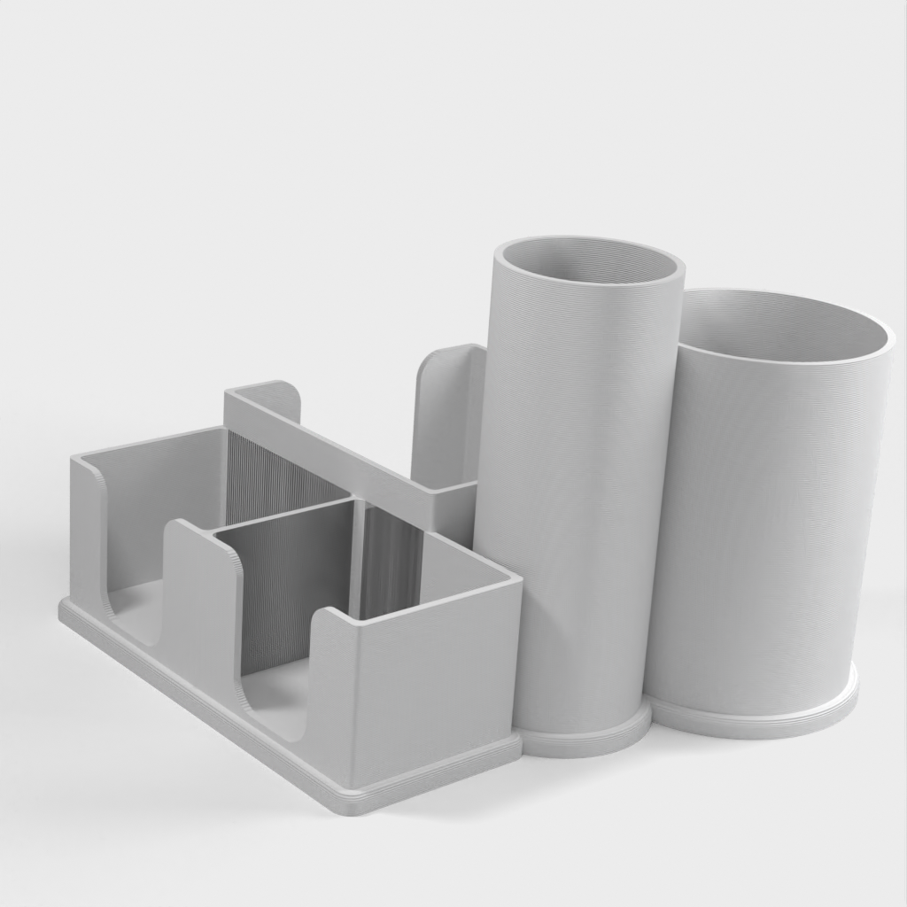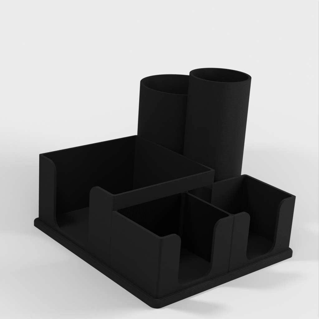 This desk organizer is an ideal storage space for your pens and pencils and can also accommodate two different sizes of Post-It notes. It is a simple solution that helps keep your desk tidy and organized.