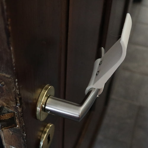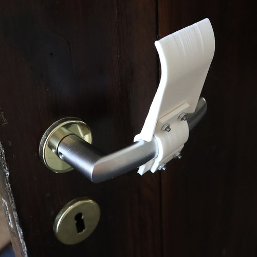 Hands-free door opener that is user-friendly and can be adapted for round, ellipsoidal, and curved door handles. This allows you to easily open the door without having to use your hands, which increases hygiene and reduces the risk of spreading contamination. You can specify your own parameters using the 'Customizer' to ensure the door opener fits your door handle perfectly.