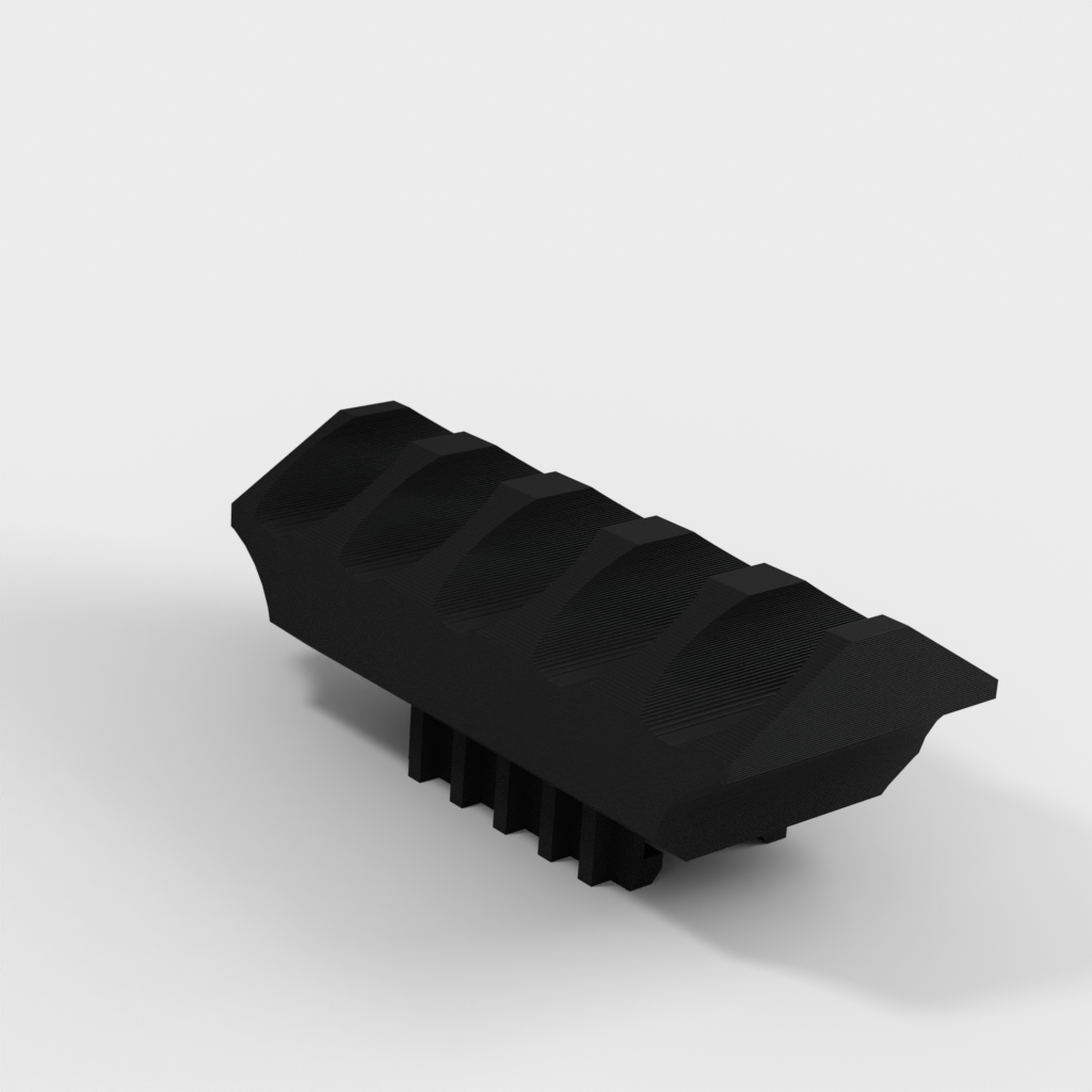 Slide-on holder for five Nerf darts. The Nerf Dart Holder easily fits onto your Nerf gun, providing quick, convenient storage for your ammunition. A must-have for any Nerf enthusiast.