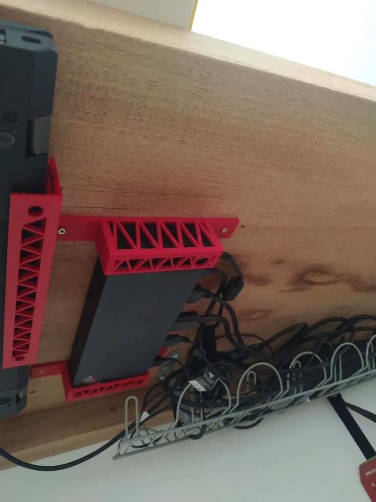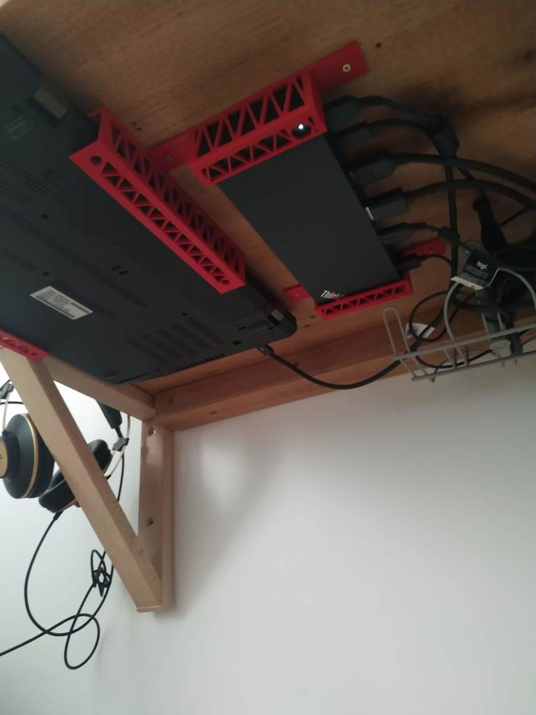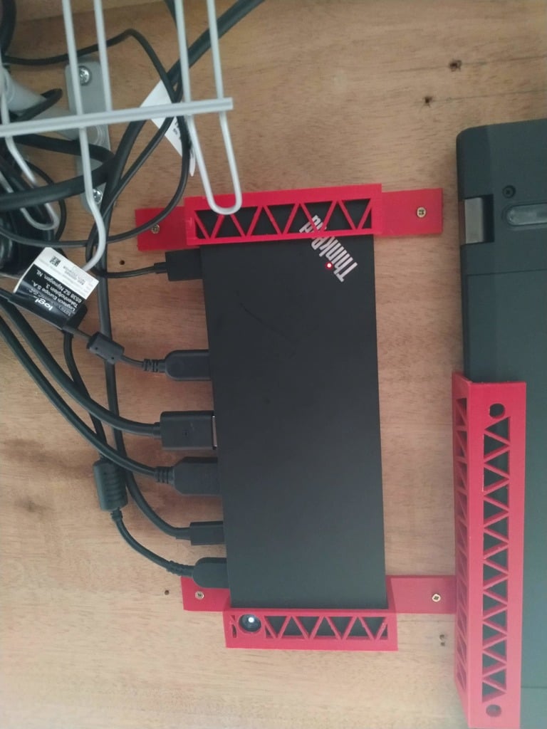 Under desk mount for Lenovo ThinkPad Thunderbolt 3 Dock. Mount your dock under the desk to save space and to keep your workspace tidy and organised. The mounting piece has a hole for the button and two holes for mounting with two 2.5 mm screws.