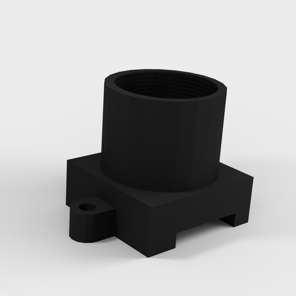 This is an M12 mount for a Raspberry Pi V2 camera. The mount has been adapted to fit the unique construction of the Pi V2 camera, where the connector is offset compared to the V1 camera. After printing and cleaning the supports, this mount fits the camera perfectly.
