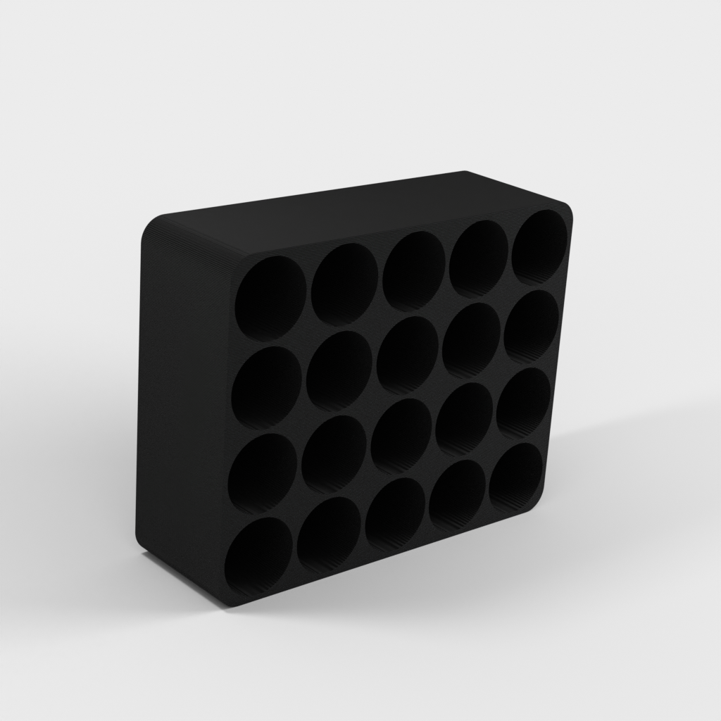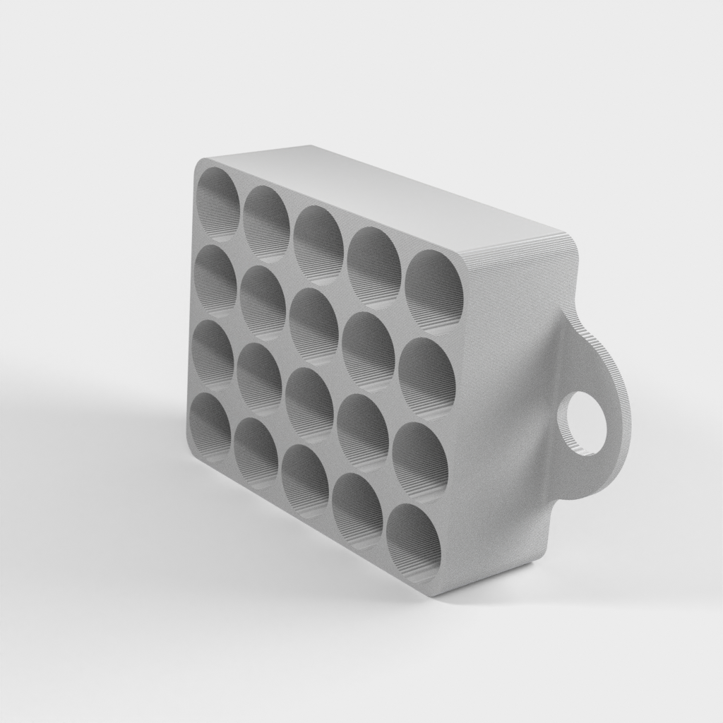 Simple Nerf Dart holder designed to keep your darts organized and easily accessible. Perfect for children who want to keep track of their darts during play. When all darts are in place, it makes it easy to find the missing darts.