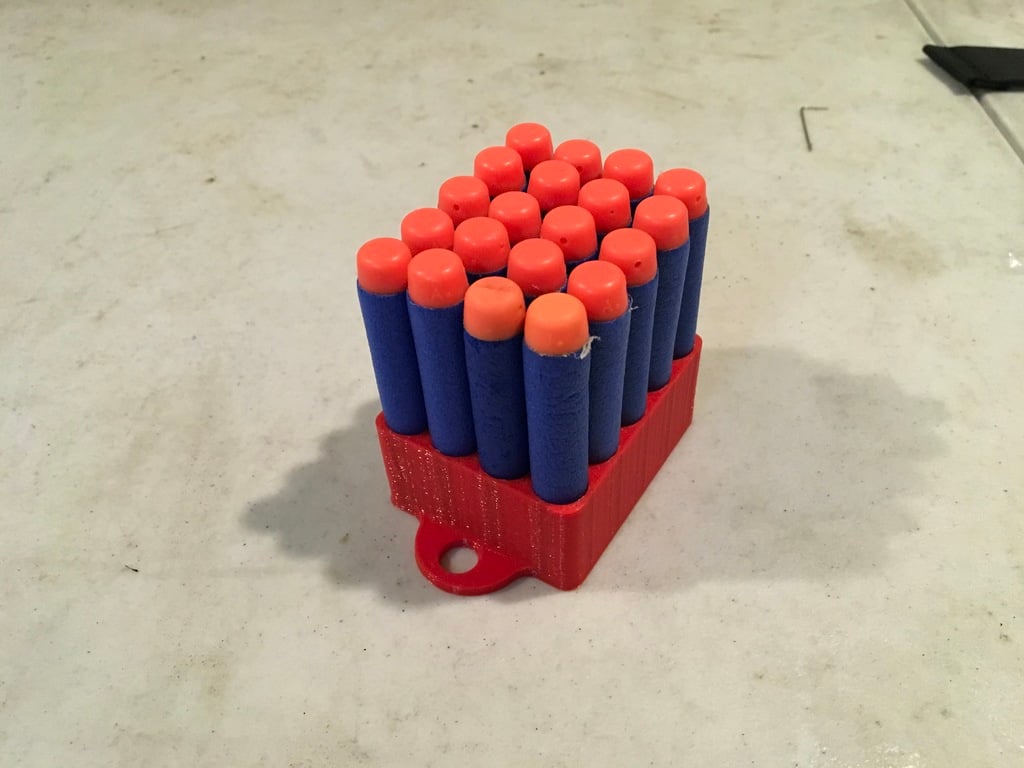 Nerf Dart Holder version 2 is now available. The cavity has been enlarged to make loading the darts easier, but they are still tight enough not to fall out.