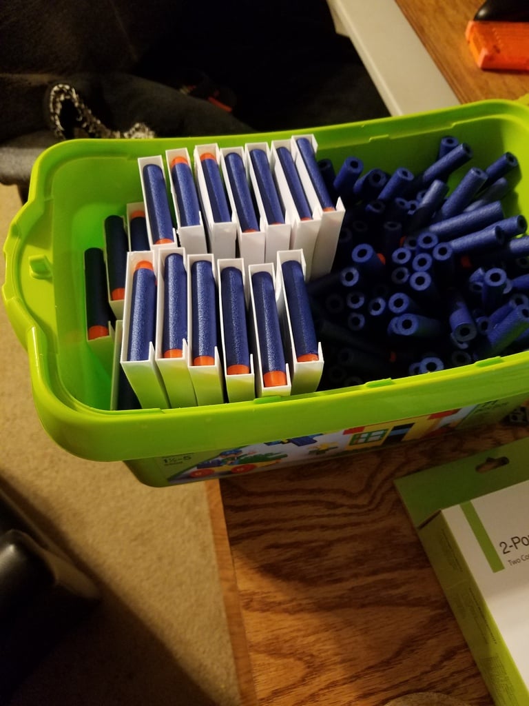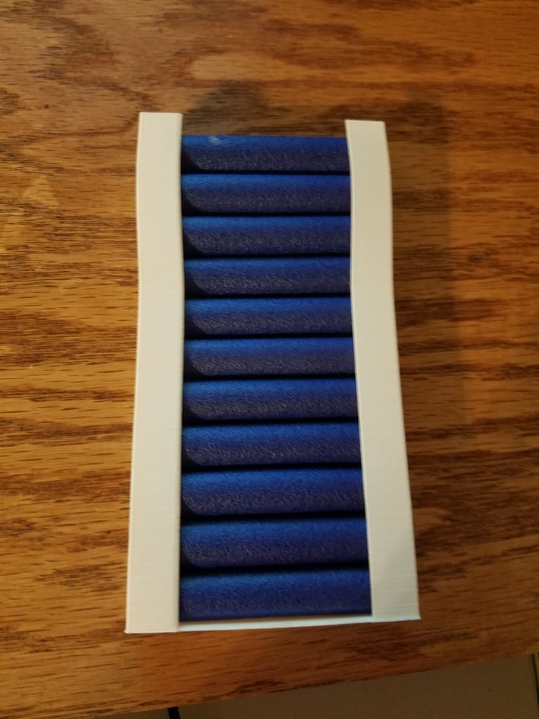 Optimize the speed and fun of your Nerf battles with the Nerf Dart Speed Loader for Standard Magazines. This speed loader allows you to refill standard Nerf magazines with up to 6, 10, or 12 darts at once. The loader is compatible with larger clip systems that use Nerf darts or similar, and can be adapted for different clip sizes using the included CAD file. Mount the Nerf Dart Speed Loader for Standard Magazines and make your next battlefield engagement intense and entertaining.