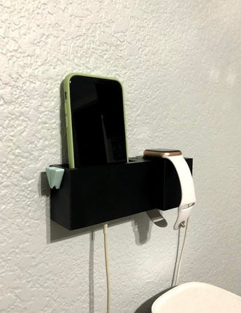 This charging dock is designed to provide a central and organized space for your iPhone and your Apple Watch. It is particularly useful in the bedroom, for example, as a discreet solution by the bedside, eliminating the need for a traditional nightstand for your devices. The holder ensures your devices are securely placed while charging, reducing clutter and keeping your essential gadgets easily accessible. With this Apple-compatible solution, you get a practical way to keep track of and charge both your iPhone and your Apple Watch at the same time, ready to use when you wake up.