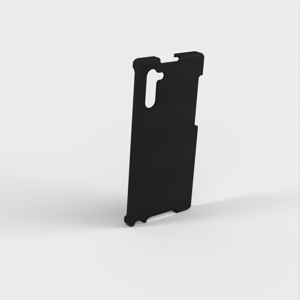 This is a robust Samsung Galaxy Note10 n970 case designed to protect your phone from everyday wear and tear. The wide range of curved edges ensures a tight fit. The case is made from rigid materials such as PLA, ABS, and HIPS. If you want to try a material that is more flexible like TPU or TPE, this is also an option.