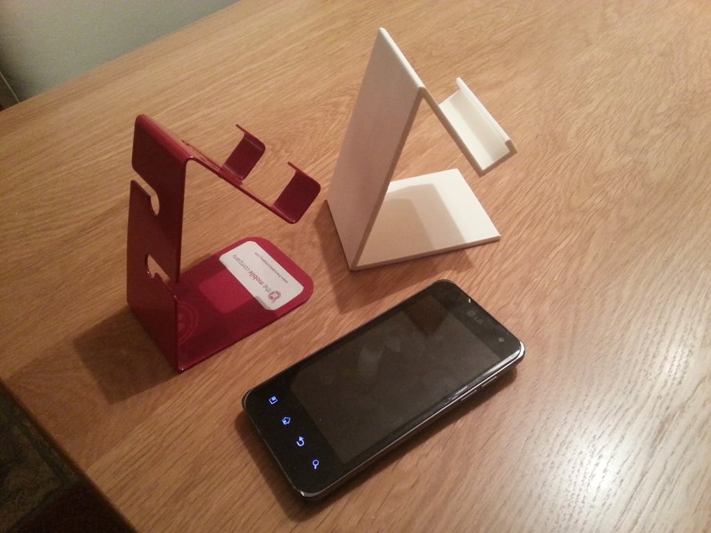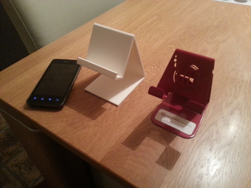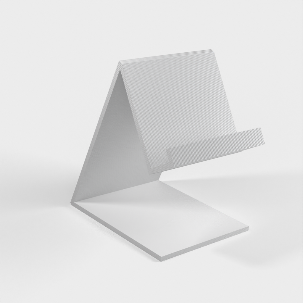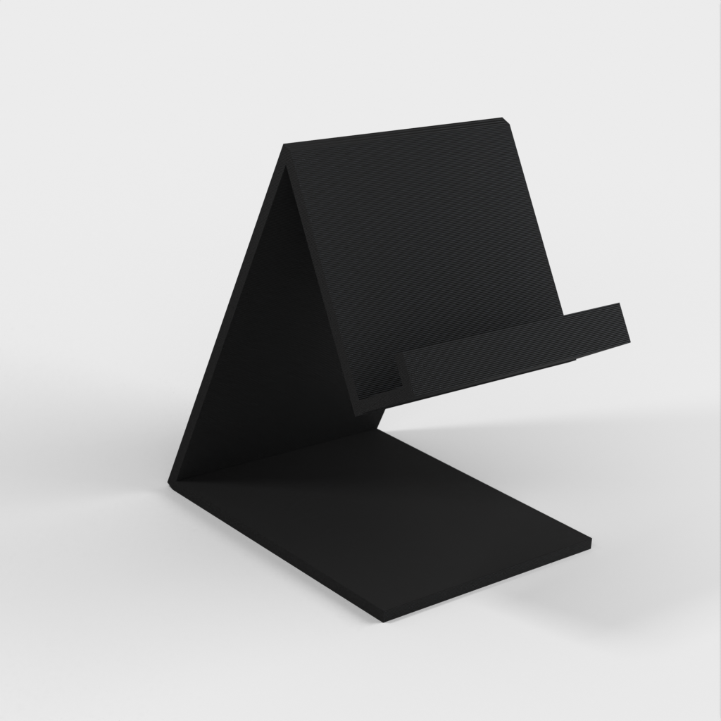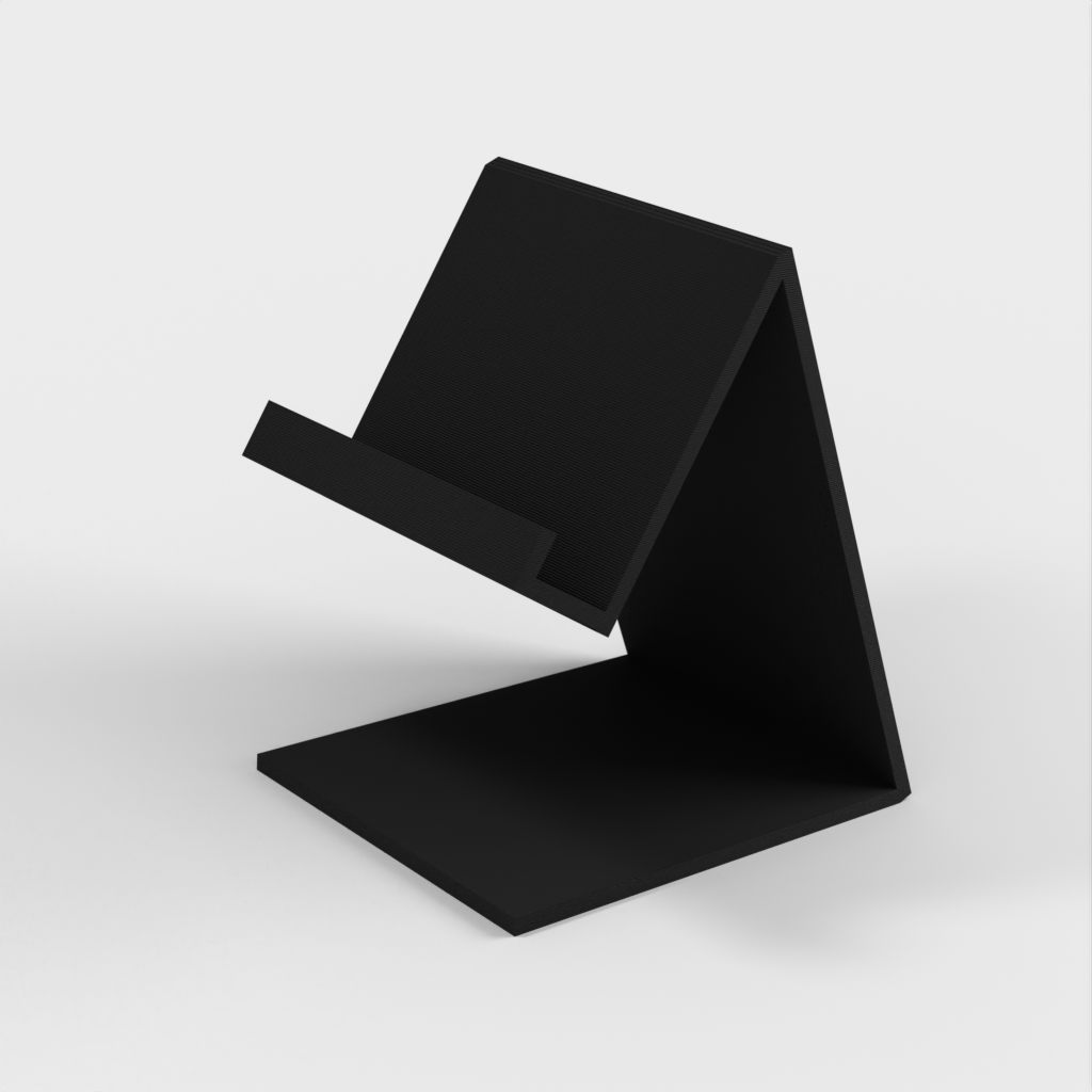 Universal mobile phone stand manufactured with openscad. The stand is designed to fit various types of mobile phones and allows you to easily place and use your phone on a flat surface.