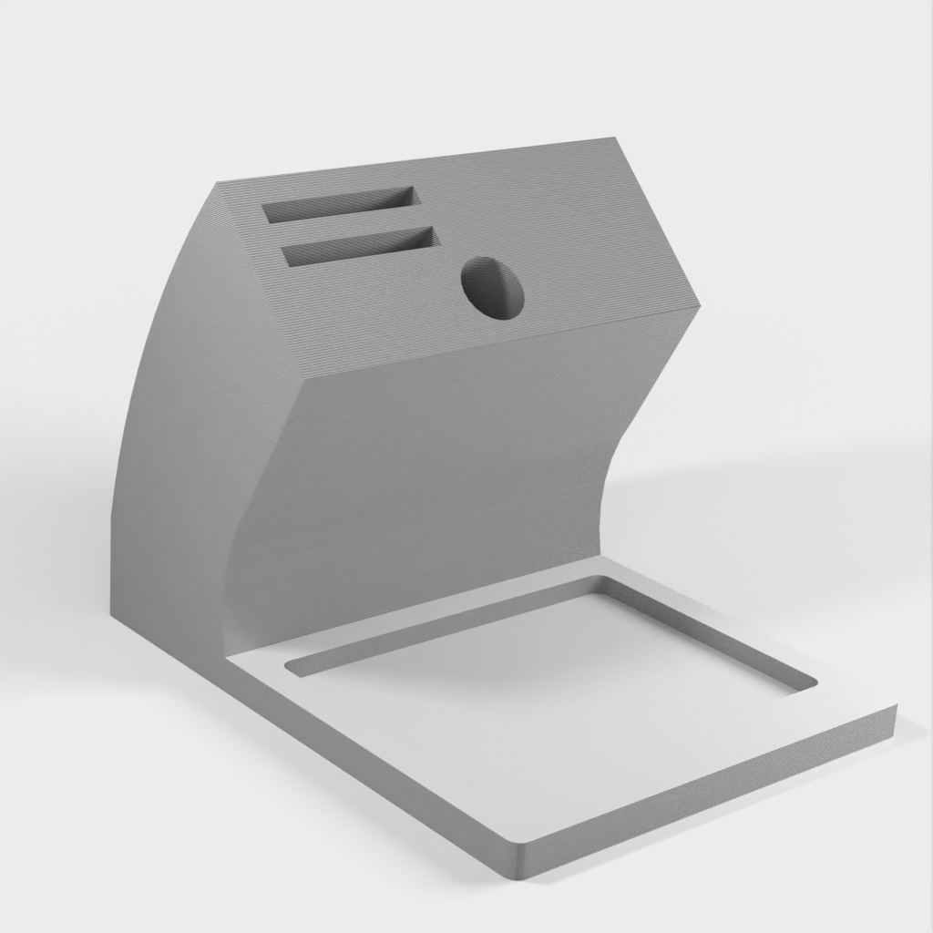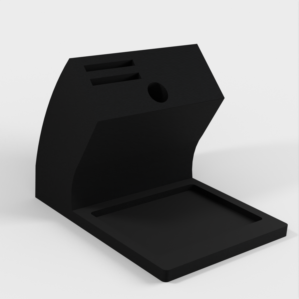 A holder for your Apple Pen with two SD card slots and storage for your AirPods. Perfect for keeping your desk organized. The Apple Pencil can easily be placed in the holder, saving space and keeping your desk neat and tidy. AirPods and SD cards also have their dedicated spaces, making it easy to find your essential devices and accessories.