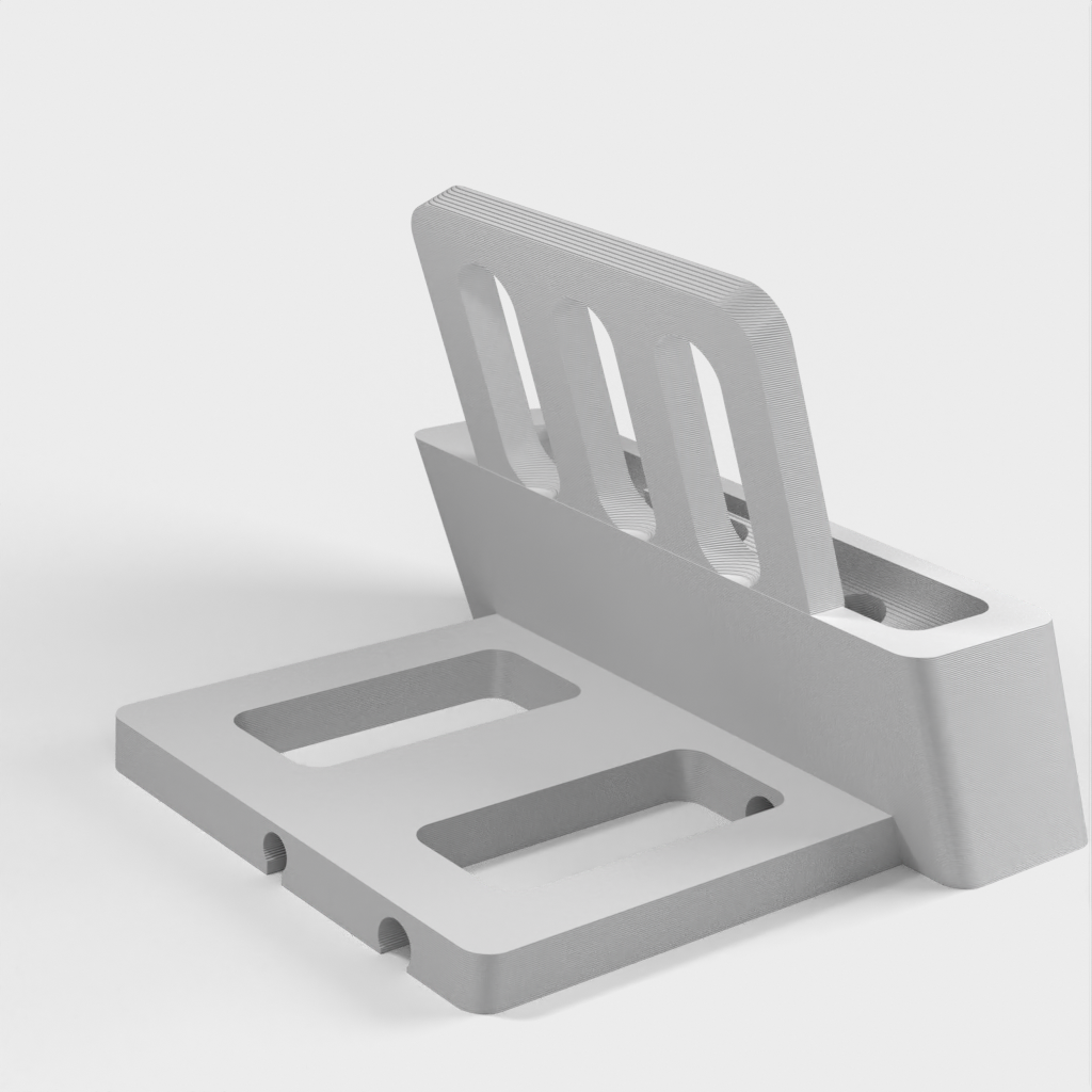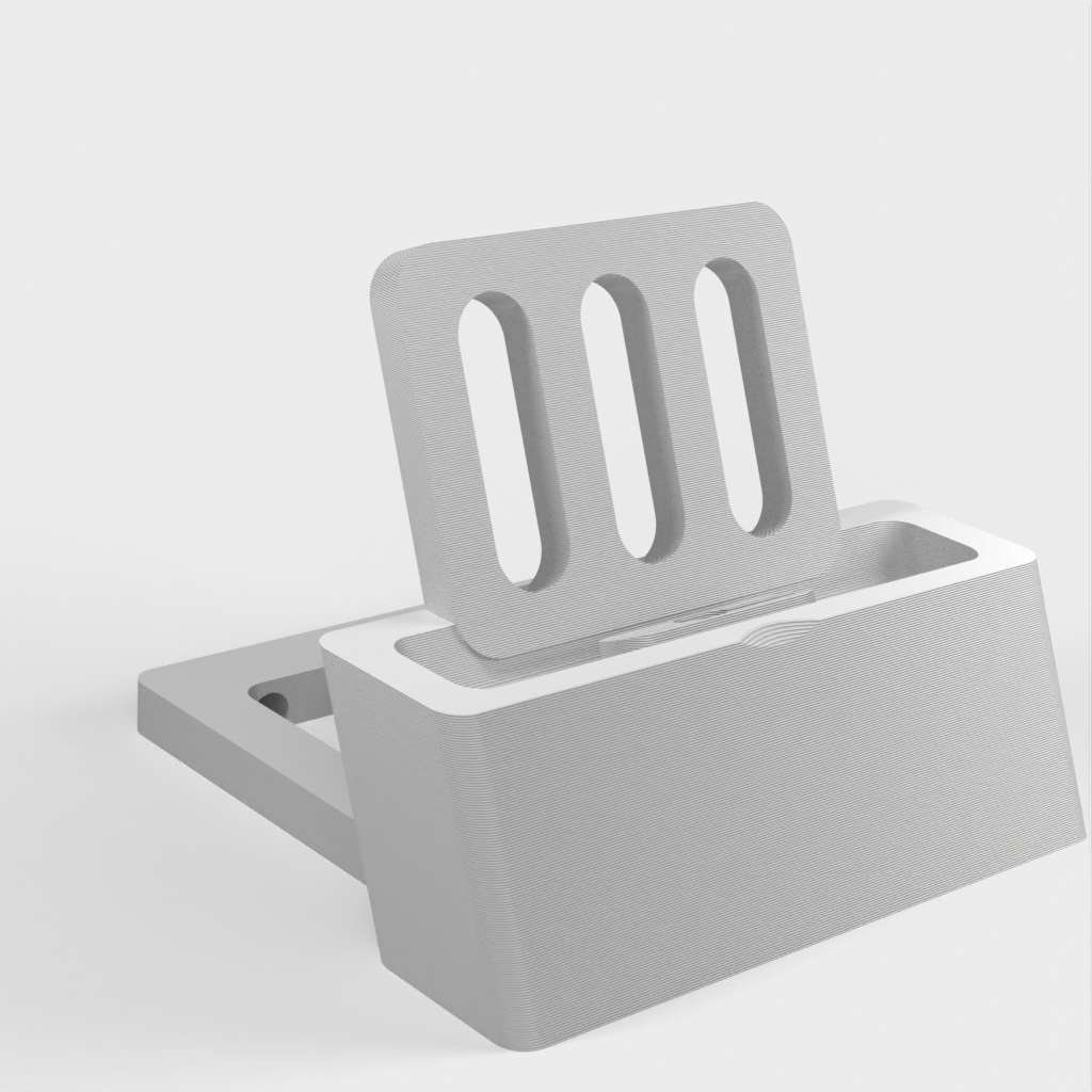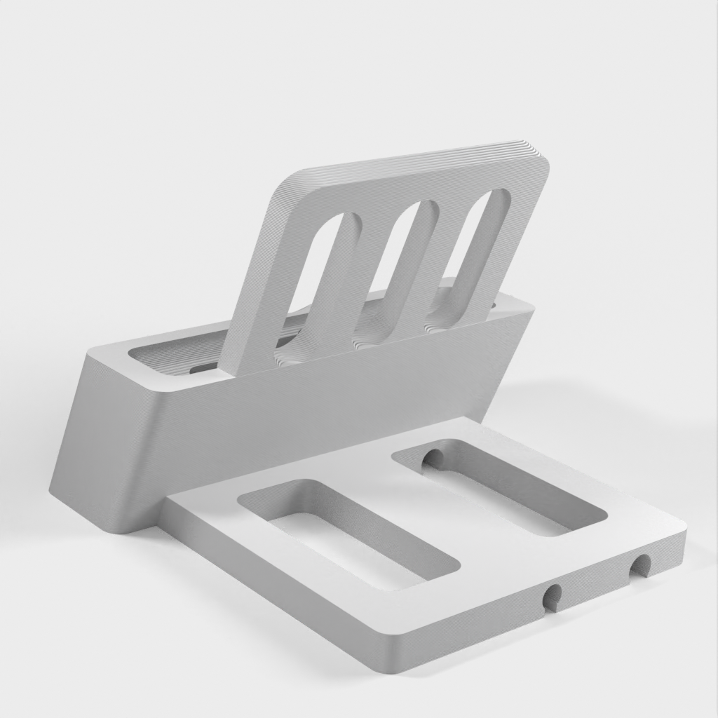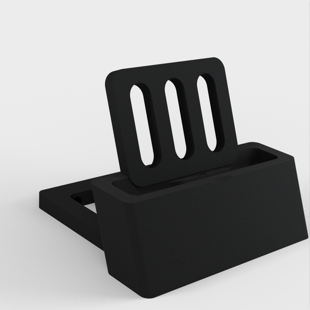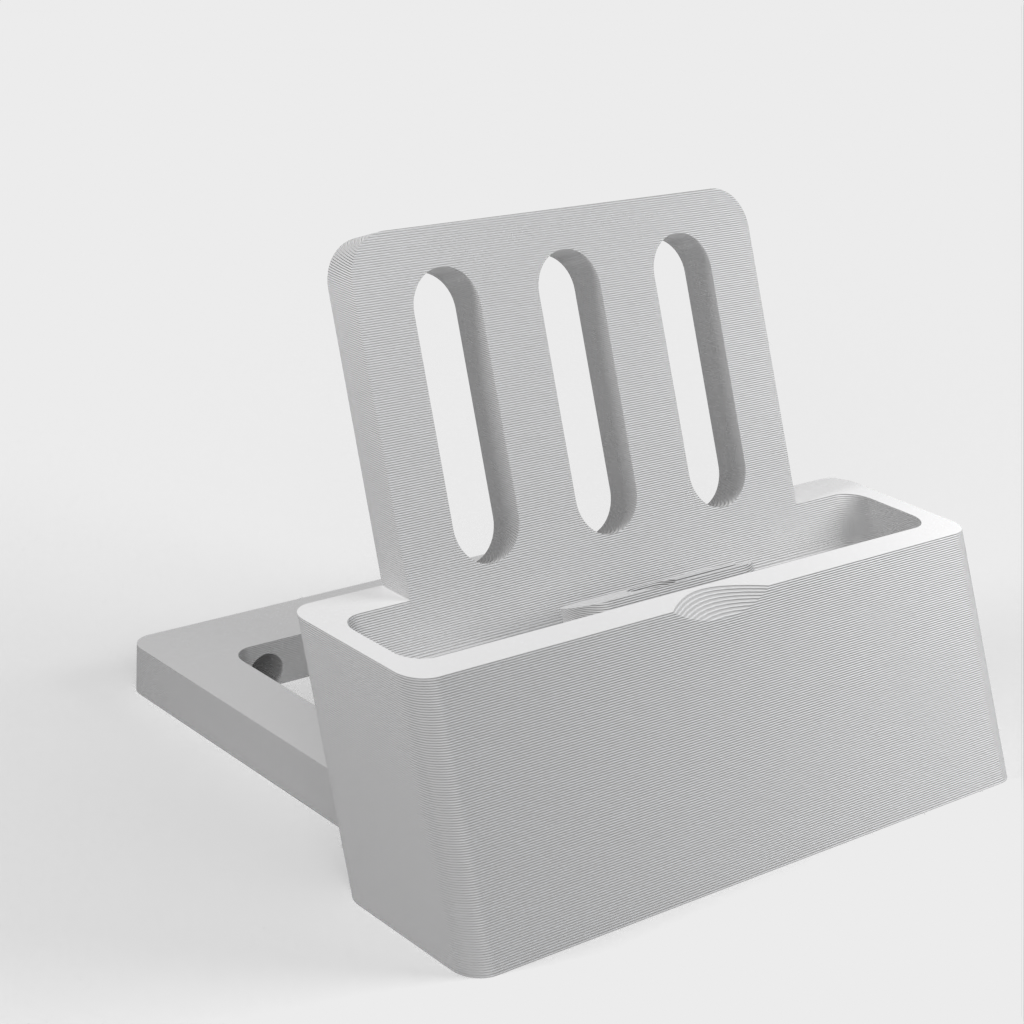 iPhone 5/6 Dock v3 is a stand for your iPhone, even when it is in a case. The stand also supports the back of the case. This version remains compatible with iPhone 5 and has now added support for iPhone 6.