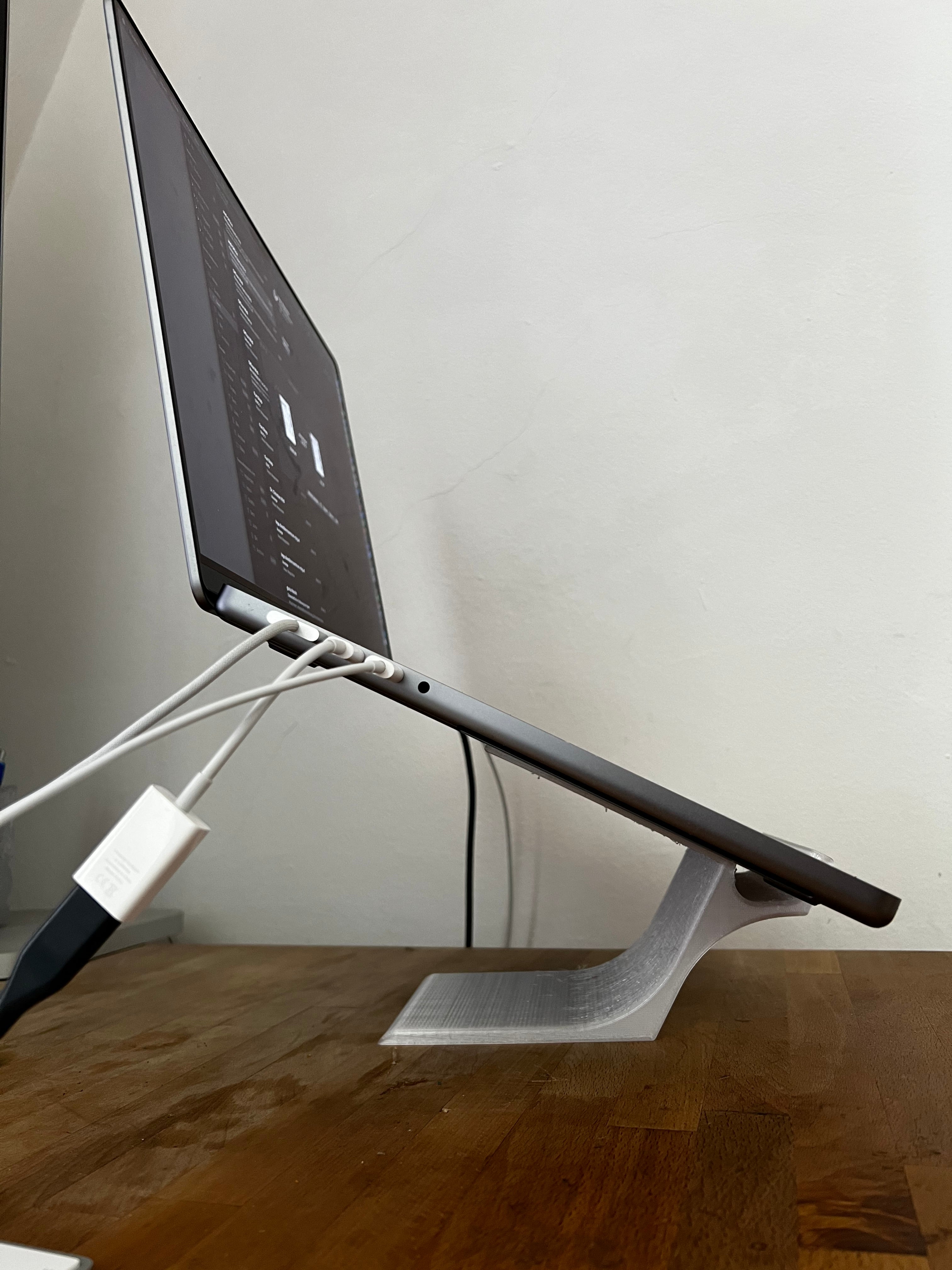 Elegant and well-balanced stand suitable for the M1 Macbook Pro 16. This stand is ideal for organizing your workspace and offers a secure and stable base for your Macbook. Made from PETG, it ensures durability and reliability in use.