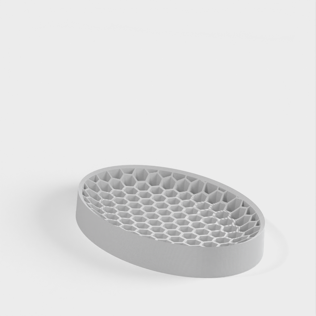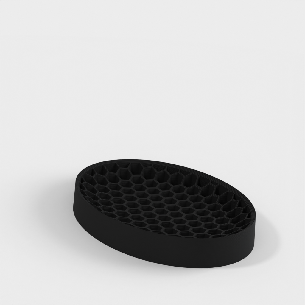 Drænende sæbeholder til badekar, bruser og bord. Denne smarte sæbeholder er designet med afløbskolonner, hvilket gør det nemt for vandet at flyde fra, så din sæbe forbliver tør og forhindrer ophobning af vand i både din sæbe og på overfladen. Den opdaterede version har et lavere design, mindre vægt og mindre sekskantede huller for øget funktionalitet. Denne sæbeholder er ideel til at holde din sæbe ren og tør, uanset hvor den bruges.