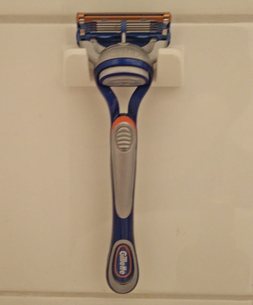 Holder til et Gilette Fusion barberingsblad, så det nemmere kan opbevares bagefter. Holdet kan ligeledes hjælpe med at forlænge levetiden af dine barberblad ved at holde dem tørre.