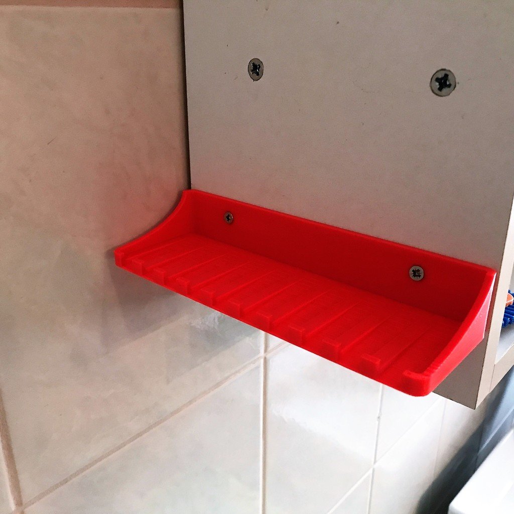 En vægmonteret badeværelse hylde, der kan printes og monteres med skruer. Hylden er ideel til opbevaring af små toiletartikler og tilføjer nødvendig ekstra opbevaringsplads til ethvert badeværelse. Dens kompakte størrelse gør den perfekt til små badeværelser.