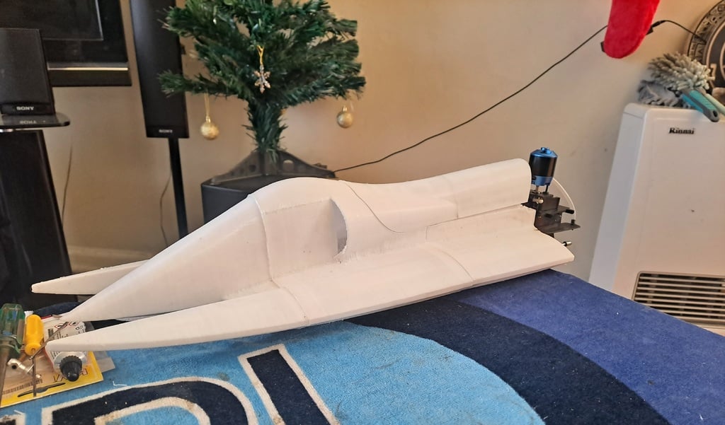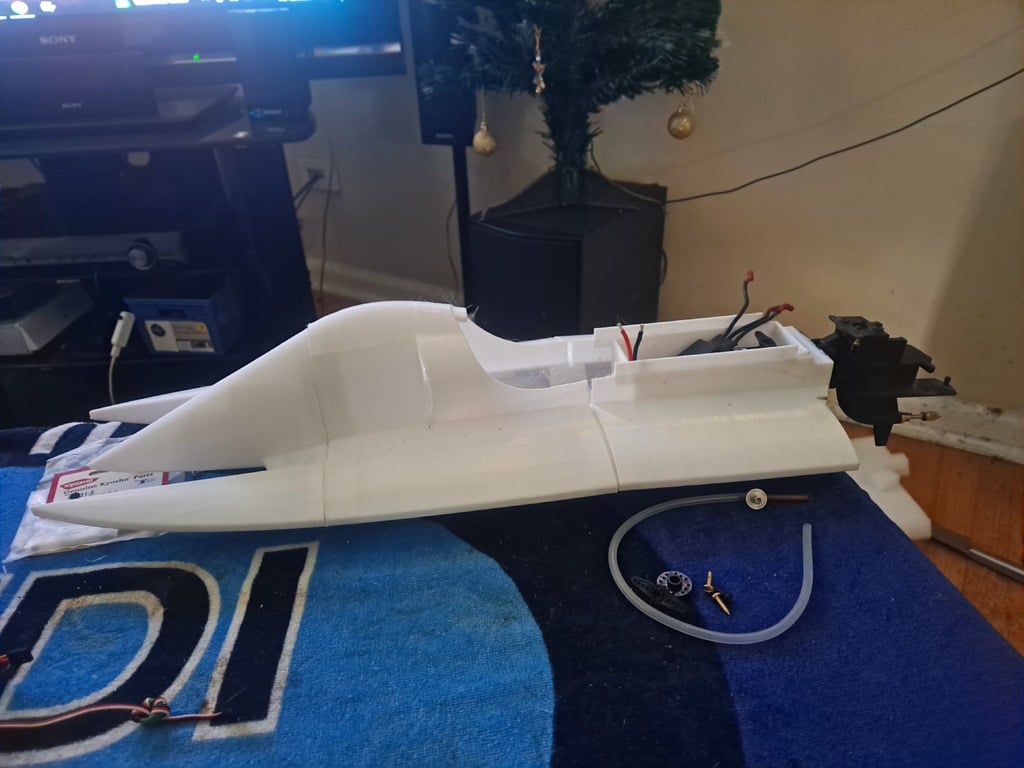 Båden er konstrueret med integrerede skotter, der muliggør en ligetil samling af skrogets dele, hvilket sikrer en robust og holdbar struktur. En 5 mm agterspejl er inkluderet i designet, hvilket giver et solidt fundament for nem montering af en påhængsmotor. For at beskytte det interne båd hardware, såsom elektronikken, er der en dedikeret elektronikboks, og lugerne er forsynet med en sikker velcro-lås, der holder dem på plads selv under dynamisk sejlads.