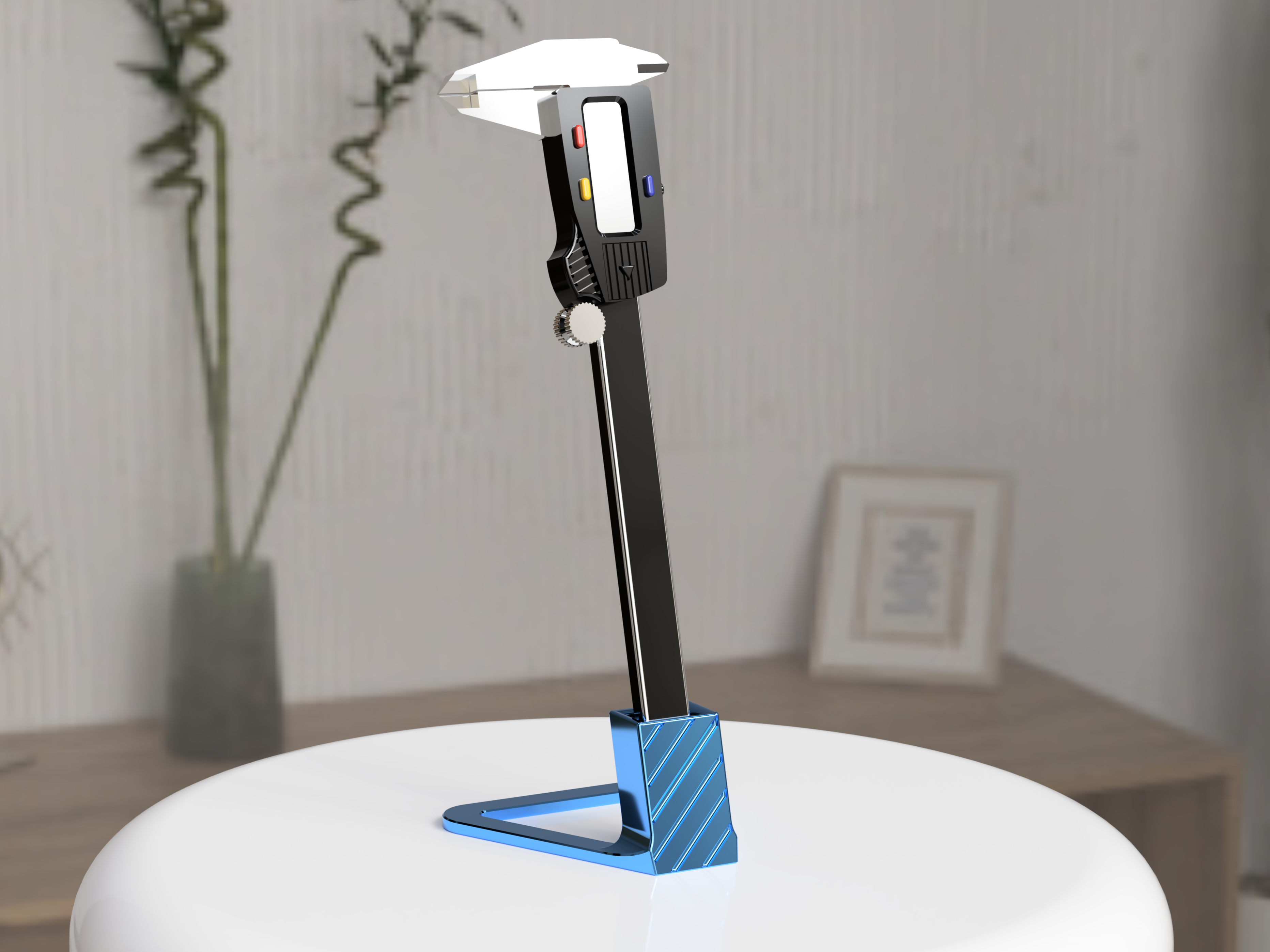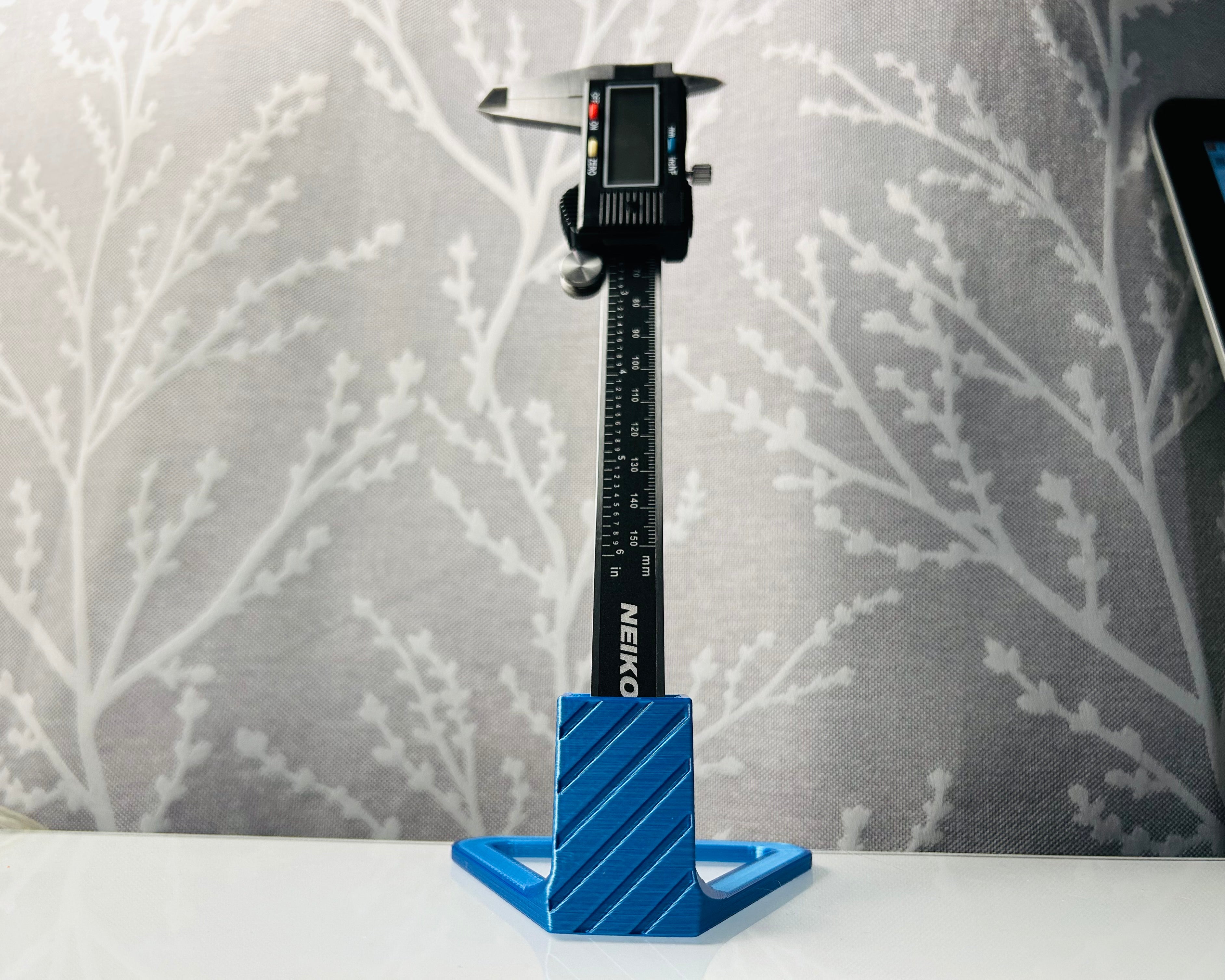 Discover the Compact Caliper Stand, the perfect solution for organizing your caliper tools on your desk. This compact holder features a vertical, inclined design that makes it ideal for small workspaces. It can be printed without supports and is easy to use by securely inserting your calipers into the holder.