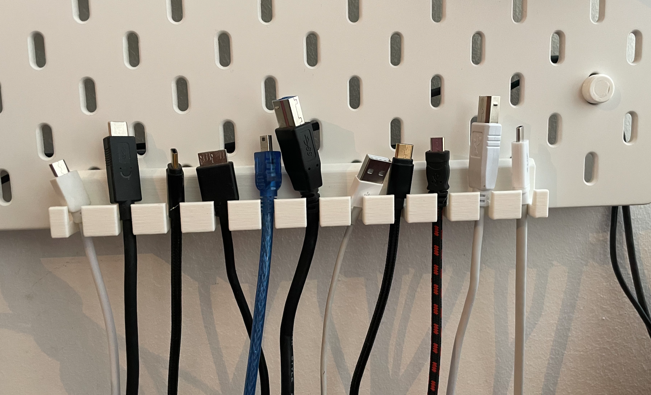 The cable holder helps you make optimal use of your wall space, allowing your USB cables to hang neatly and clearly. Whether it's for chargers, external devices, or other gadgets, the Skadis USB Cable Holder ensures you can always easily find the cable you need. The product contributes to a more systematic environment where focus can be directed towards tasks rather than cable chaos.