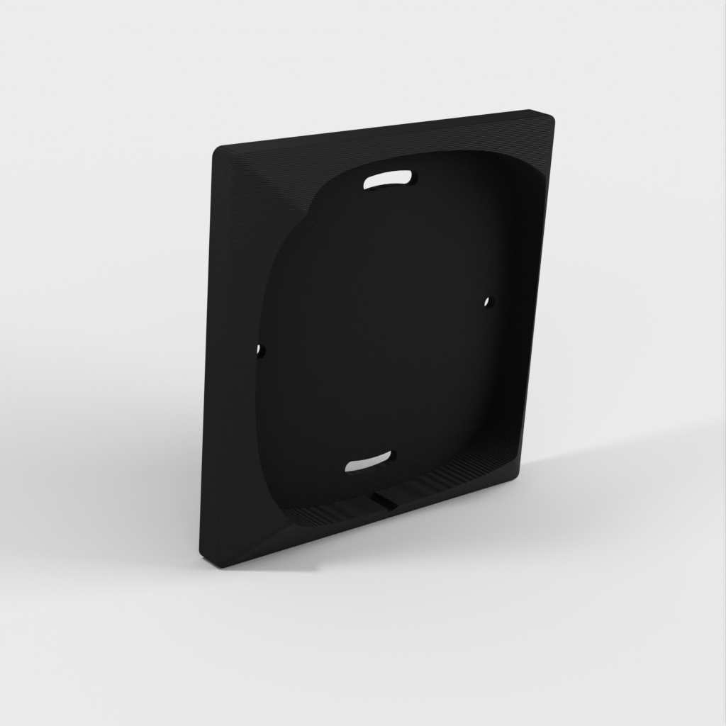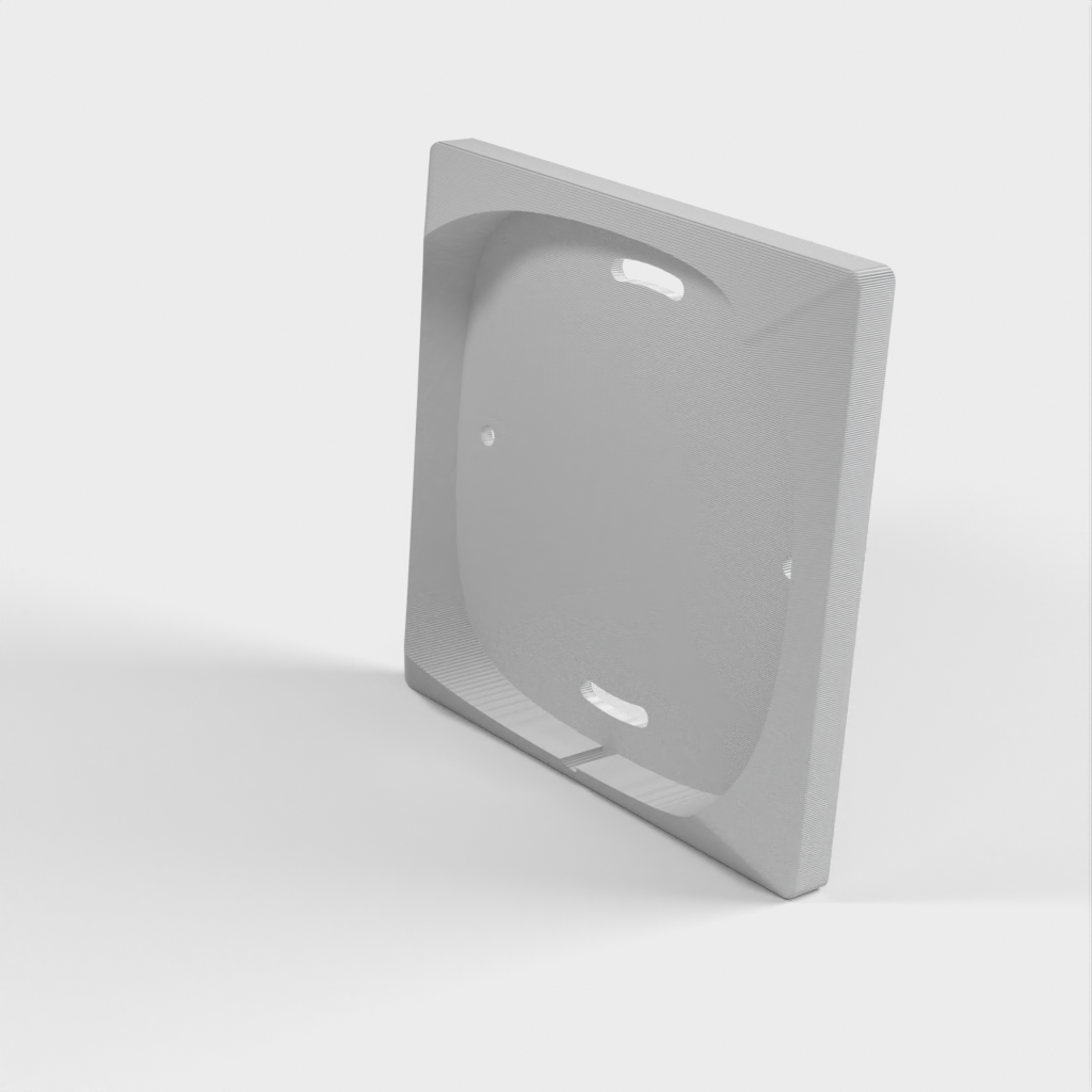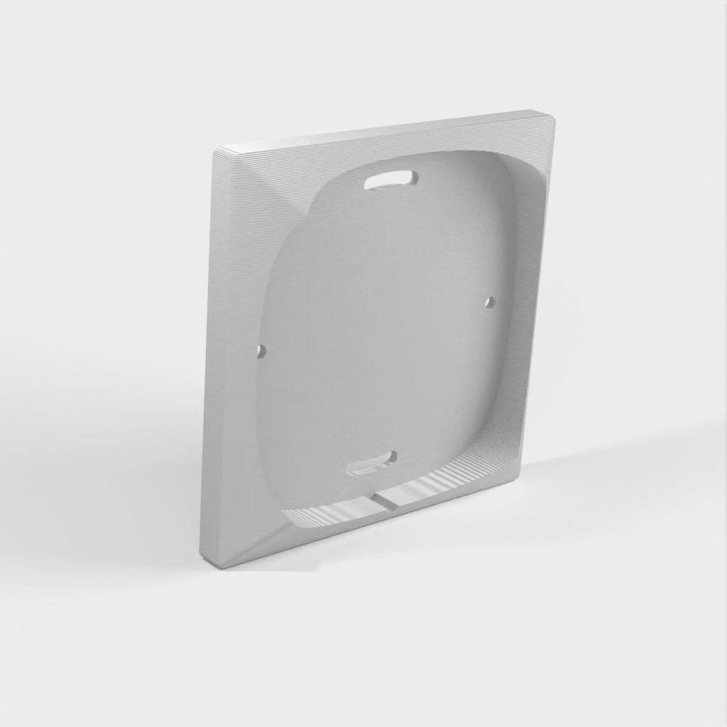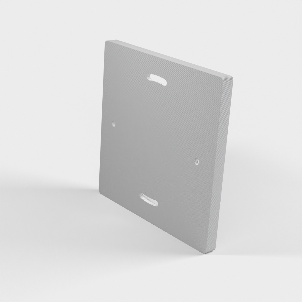 The STYRBAR Wall Mount is a mount for IKEA's STYRBAR smart home remote control, designed to easily replace the normal light switch location. This model has holes for mounting it on a standard 'Unterputzdose' (~recessed box). And because ours is uneven in the wall, the vertical holes are slotted.