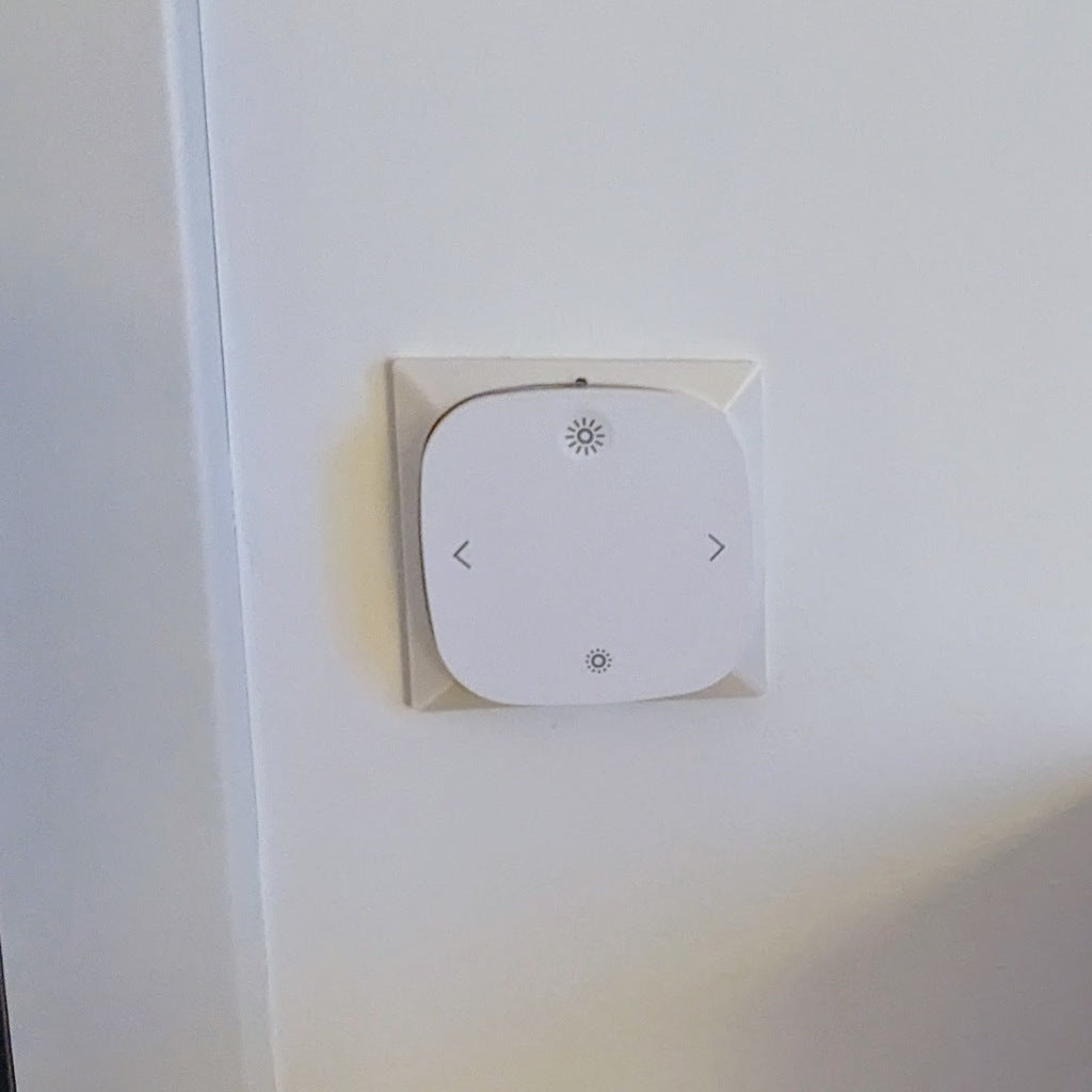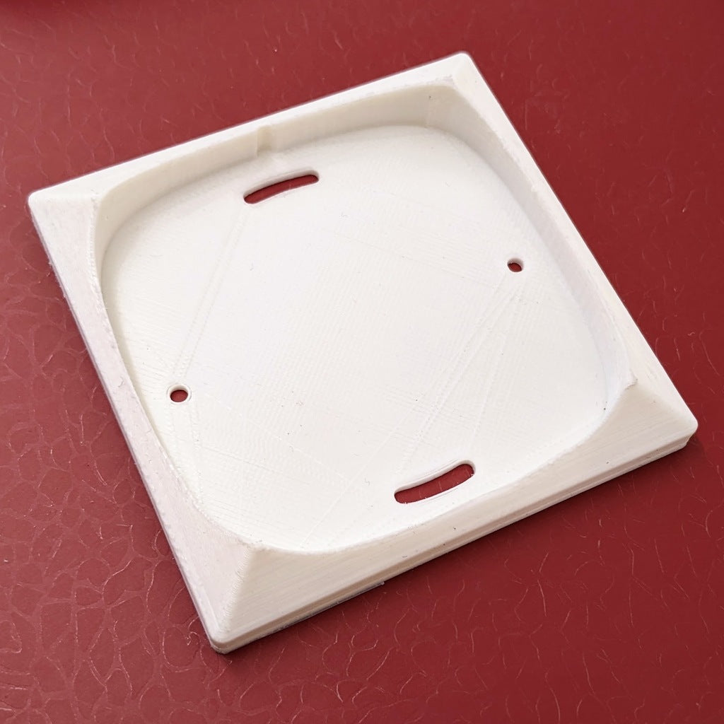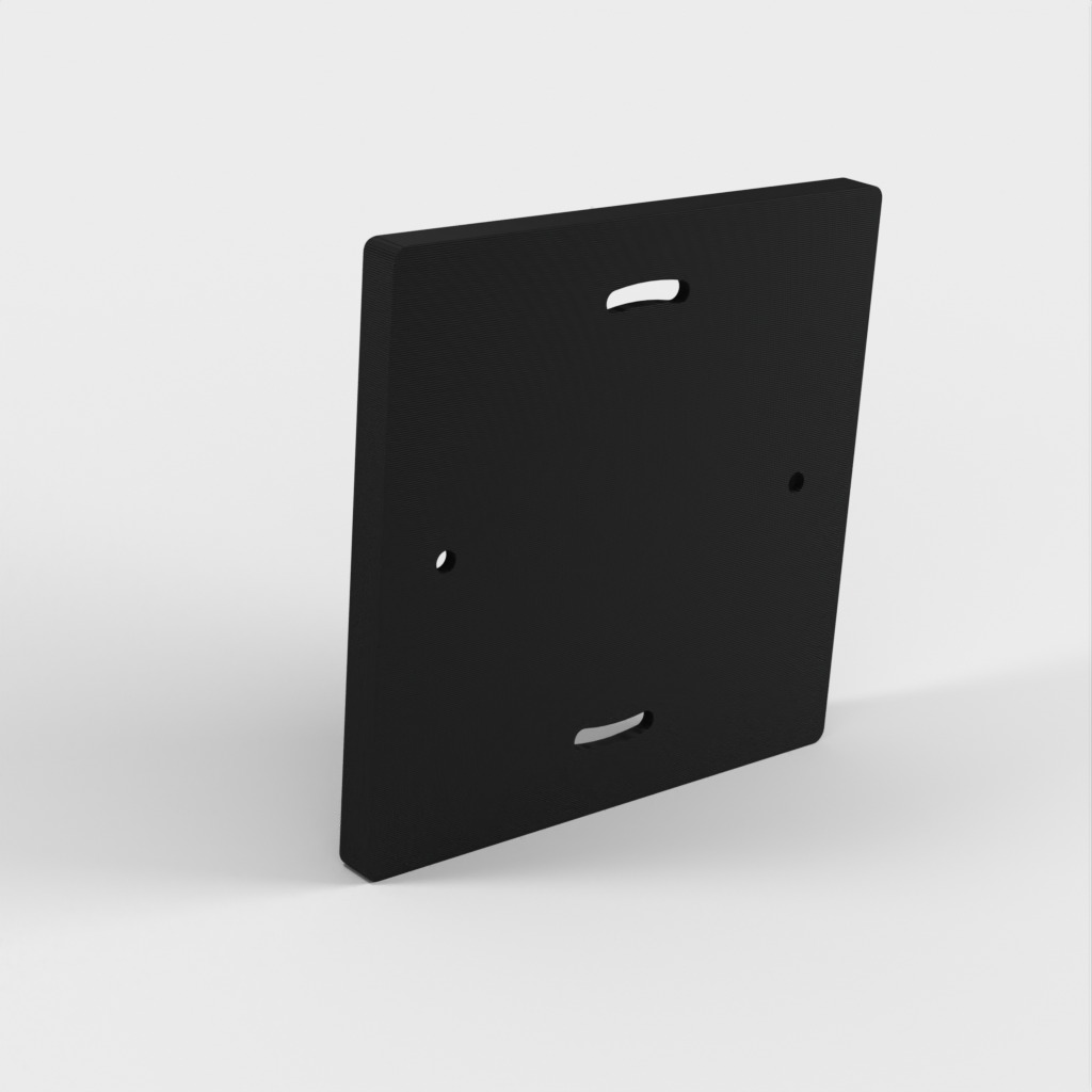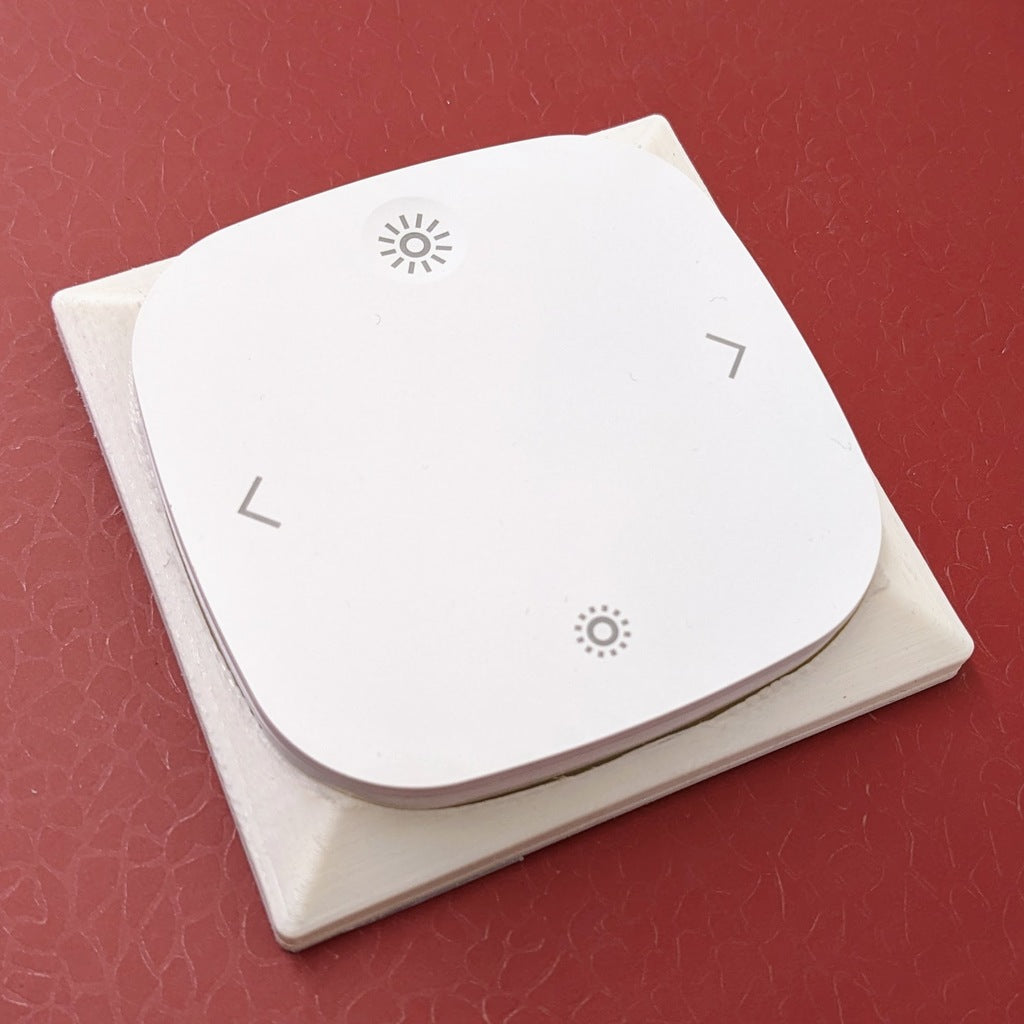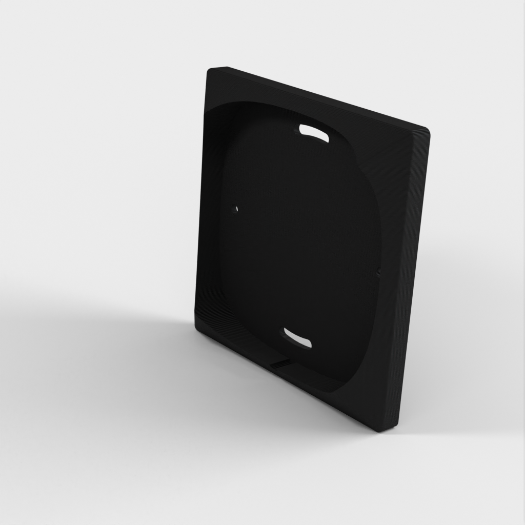 The STYRBAR Wall Mount is a mount for IKEA's STYRBAR smart home remote control, designed to easily replace the normal light switch location. This model has holes for mounting it on a standard 'Unterputzdose' (~recessed box). And because ours is uneven in the wall, the vertical holes are slotted.