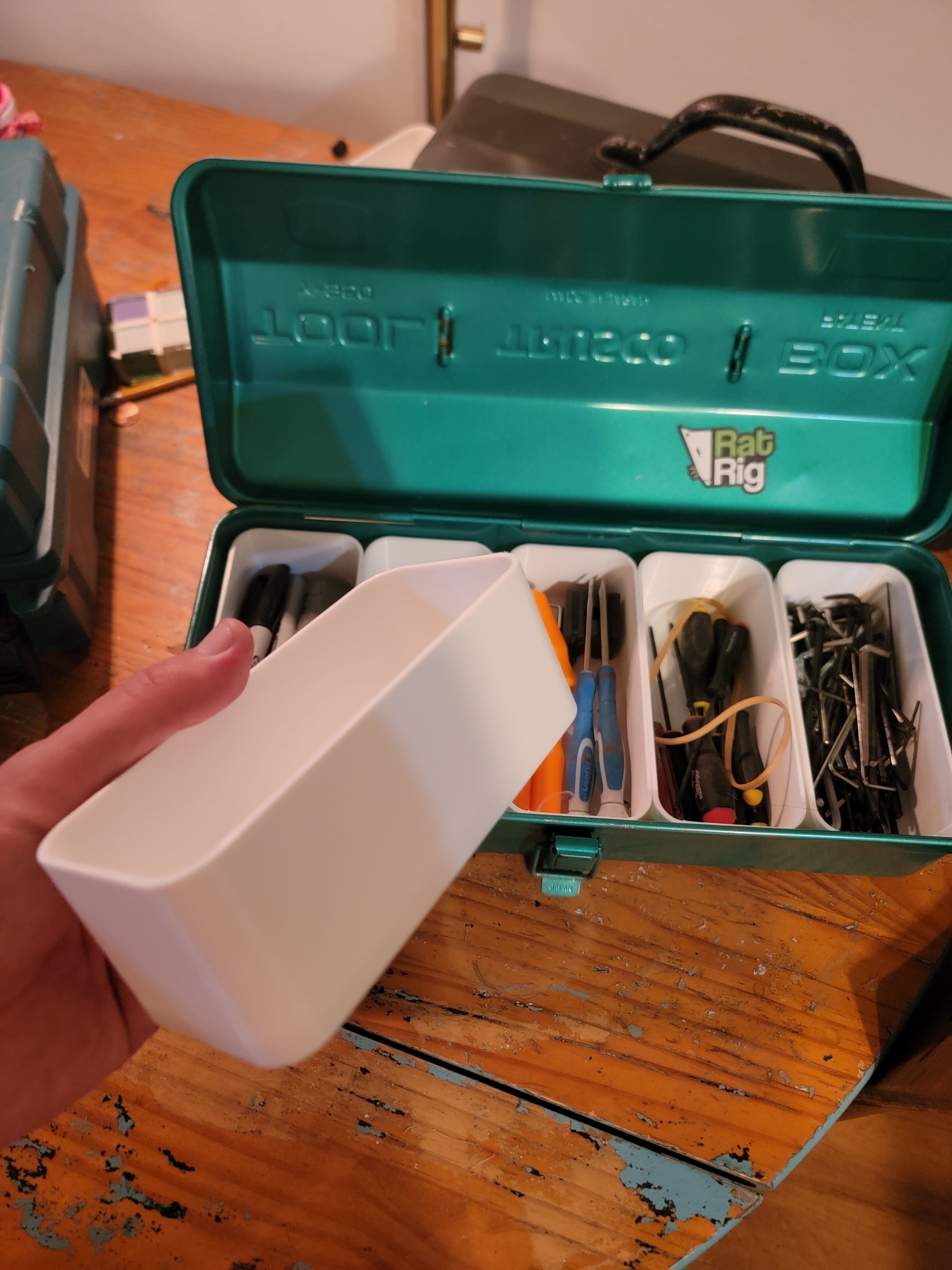 Designet til at optimere pladsen i din Toyo Steel TRUSCO Y-350-GN værktøjskasse, tilbyder denne praktiske indsats en effektiv løsning til at holde dine værktøjer organiseret. Forestil dig et arbejdsområde uden rod, hvor hver del har sin faste plads. Dette organiseringssystem består af små, vinklede kasser, der passer perfekt ind i din metalværktøjskasse, hvilket forbedrer overskueligheden og adgangen til dine genstande.Med denne organisator kan du nemt adskille skruer, møtrikker, bits, mindre håndværktøj og endda specifikke genstande som f.eks. tilbehør til en slagskruemaskine. Systemet hjælper med at forhindre, at værktøjer ridser hinanden eller går tabt i bunden af kassen. Det robuste design sikrer, at indholdet forbliver på plads, selv når værktøjskassen er i bevægelse. Perfekt til både den professionelle håndværker og hobbyentusiasten, der værdsætter orden og effektivitet i hverdagen.