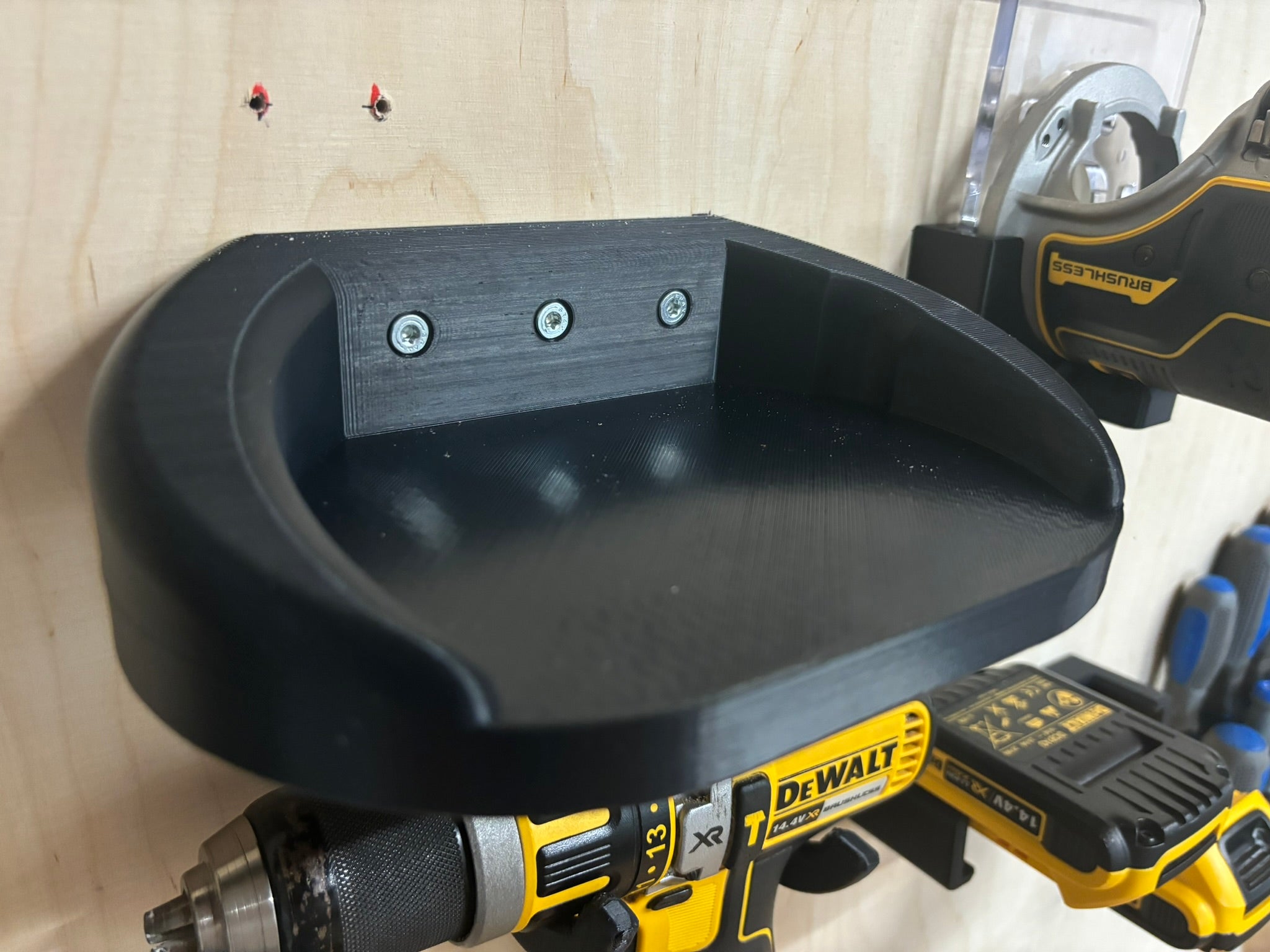 Halteren kan let installeres på væggen ved hjælp af 4 eller 4,5 mm senkkoppskruer, hvilket gør det muligt at holde dit værktøj organiseret og let tilgængeligt. Den er kompatibel med flere materialer som ASA, PETG og ABS, hvilket sikrer, at den kan tilpasses til dine specifikke behov.