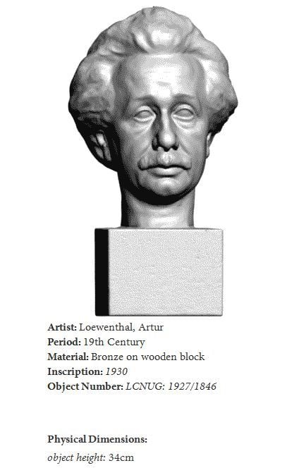 En 3D-scannet buste af Albert Einstein, som tidligere har stået på Usher Gallery og The Collection i Lincoln, Storbritannien. Busten er en nøjagtig reproduktion af den oprindelige bronzeskulptur, skabt af Artur Loewenthal i 1930.