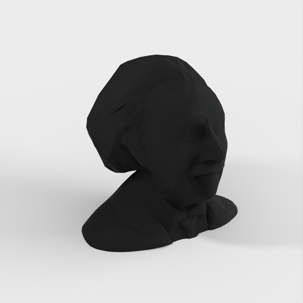 En lav-polygonal buste af Albert Einstein! Denne skulptur er en unik og interessant måde at ære dette ikoniske geni indenfor videnskab, fysik og menneskets historie. Den minimalistiske stil tilføjer et moderne twist til klassisk skulptur og vil gøre en fremragende samtalestykker i ethvert rum eller kontor.