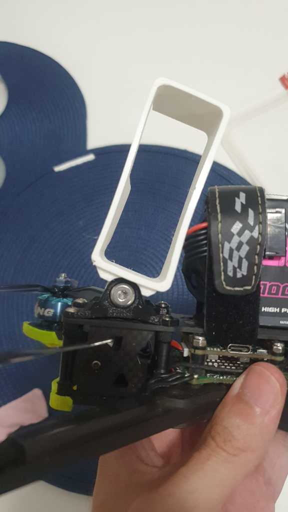 This is a vertical mount for GoPro Hero 9, 10, and 11. The fastening is solid and firm, and the camera is held away from the frame so as not to show the propeller blades. Furthermore, it also allows the use of ND filters. Perfect for your FPV drone.