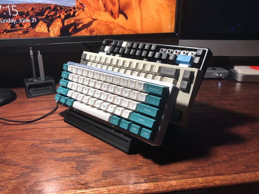 This 3-layer display stand is designed to present your mechanical keyboards in an elegant and organized manner. It allows you to store and display up to three keyboards, making it ideal for collectors or enthusiasts who want to keep their collection tidy. The stand helps optimize your desk space by utilizing the vertical dimension, so you avoid clutter while still having easy access to your favorite keyboards when you need them. Its discreet design complements any setup and highlights your keyboards as part of the decor.