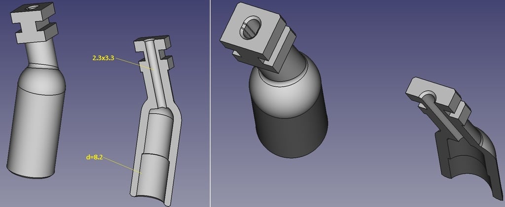 The bracket is precisely dimensioned; the hole for the wires through the bracket is elliptical (2.3 x 3.3 mm), and the hole for the jack socket has a diameter of 8.2 mm. To ensure an optimal fit, minor adjustments to the headphone's original housing may be necessary.