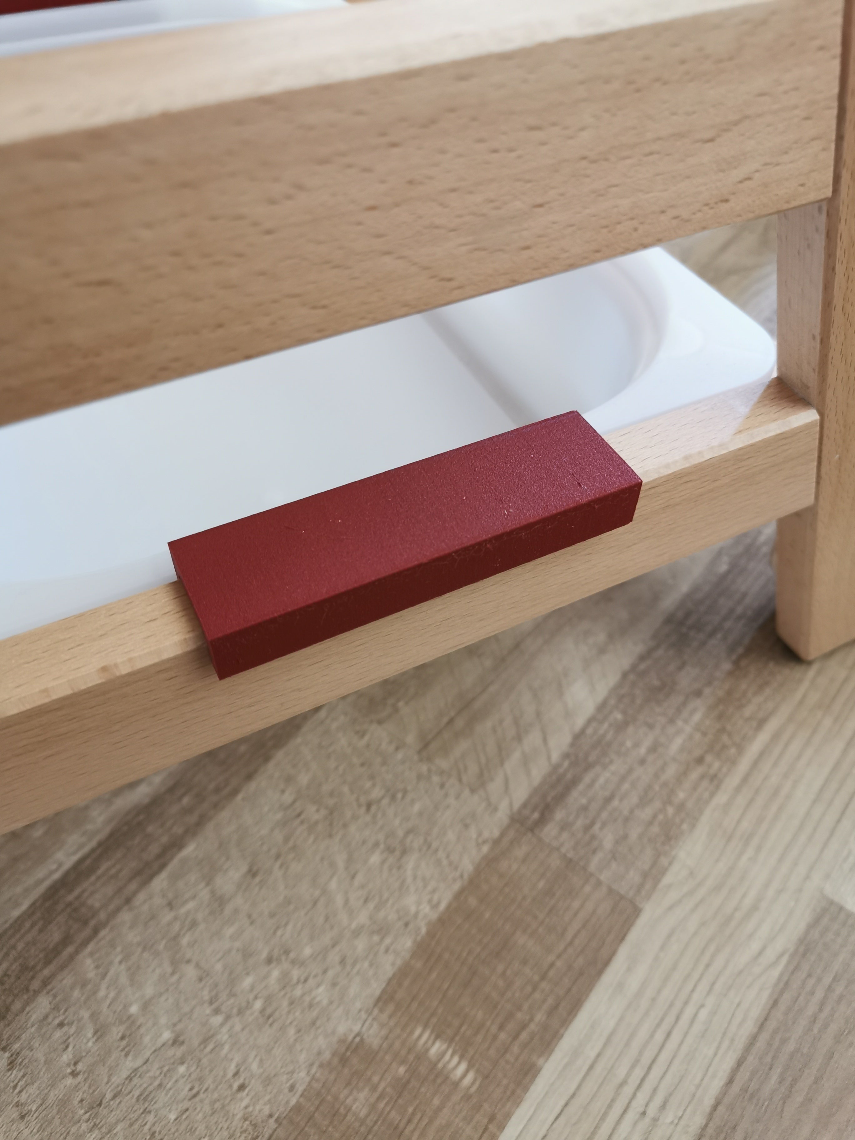 This adapter is designed to securely attach a Trofast tray to a Hauck Alpha+ high chair. The integrated small notch ensures that the tray remains firmly in place during use, minimizing the risk of it slipping or tipping over. This contributes to a smoother mealtime for children, as parents can focus on feeding without worrying about mess. A practical accessory that enhances the functionality of the high chair.