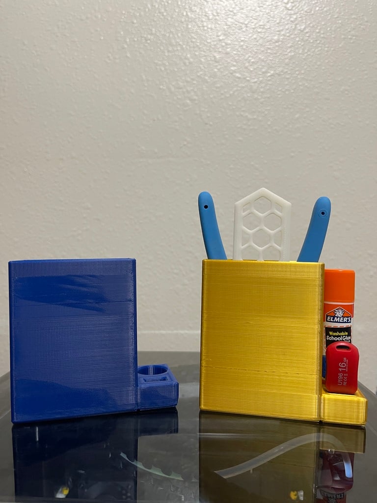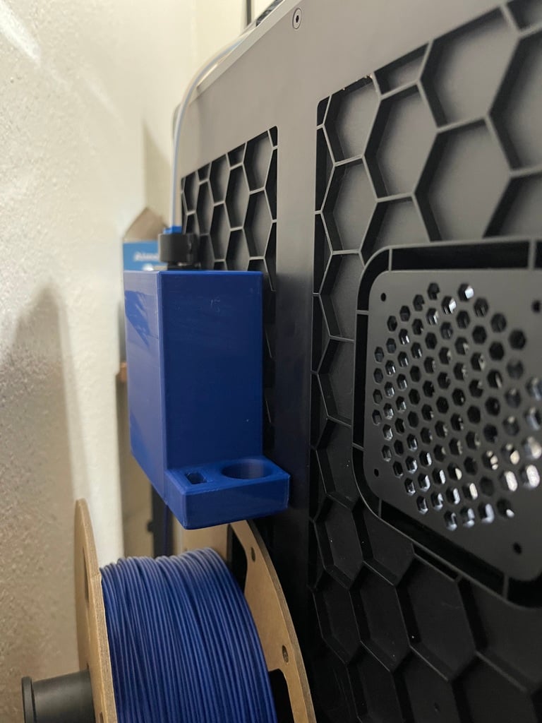 This storage box is specifically designed for the Creality K1 3D printer and provides a dedicated space for smaller accessories. It is constructed to fit discretely into the rear section of the printer via friction fitting, holding it securely in place. The box offers a convenient solution for gathering and storing frequently used tools, USB sticks, and glue sticks, keeping them easily accessible yet out of sight. The purpose is to contribute to a more organized workspace by giving these small items a fixed place.