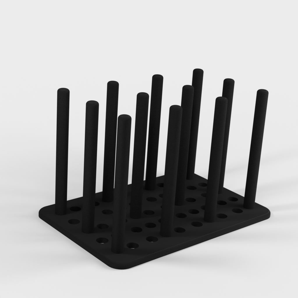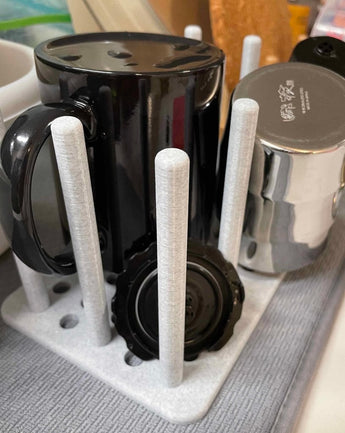 This cup drying rack is designed to provide a practical solution for quickly drying cups and glasses. With its stable construction, it can easily be placed on the kitchen counter, where it keeps your cups securely separated to ensure efficient air circulation. The drying rack is ideal for both glass and ceramic cups and helps prevent splashes and spots on the counter. Whether you have just finished washing up or you simply want an optimal way to store your cups, this drying rack is a perfect addition to your kitchen. It not only keeps your kitchen organized but also contributes to a faster drying process for your favorite cups.
