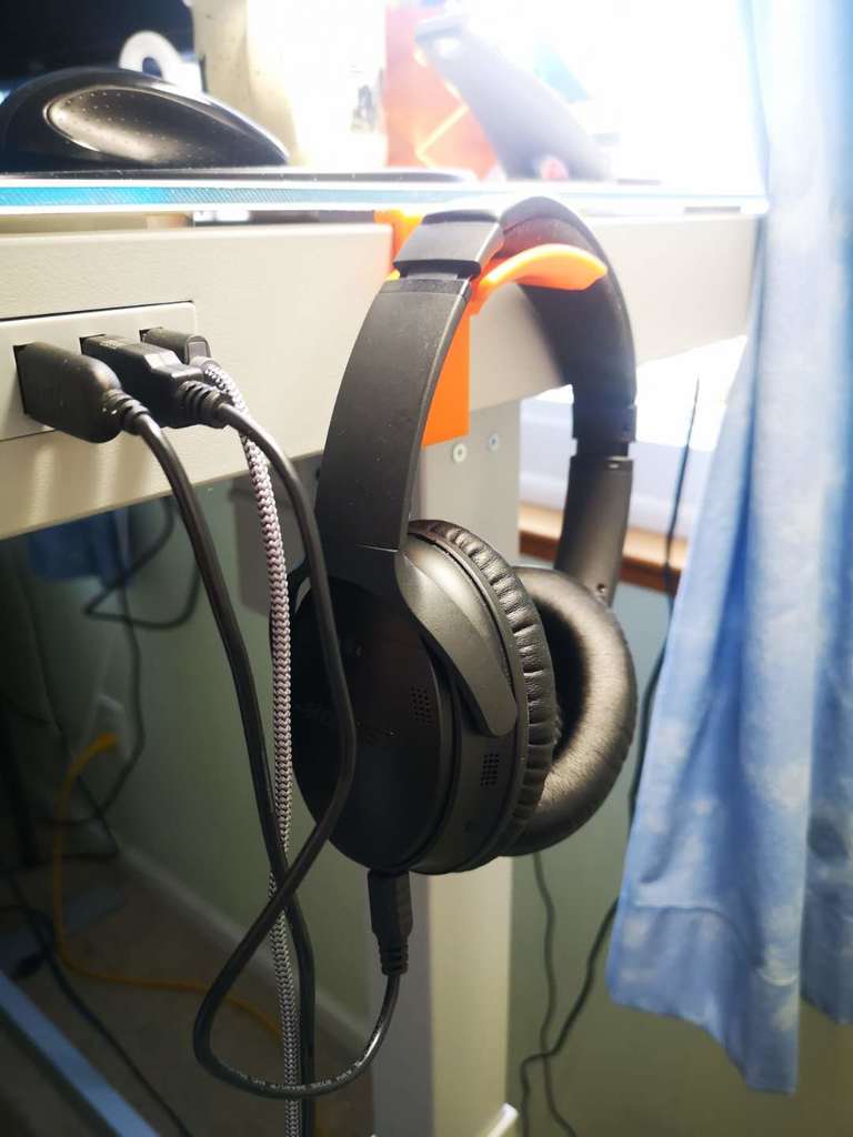 This headphone holder is custom-designed to integrate seamlessly with your Costco Tresanti adjustable desk (SKU: 1074719). It offers a convenient and discreet storage solution, ensuring your headphones are always within easy reach when you need them, without taking up valuable desk space. By keeping your headphones organized and out of the way, the holder contributes to a tidy and functional work or gaming area. It is designed to complement the desk's modern aesthetic, providing a streamlined and integrated solution for keeping track of your gear.