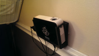 The mount's fixed design ensures that your mini projector remains extremely stable and securely positioned during use. Functionality has been considered with built-in holes that ensure good ventilation for your projector and provide sufficient space for accessories such as a Chromecast. The mounting process is made simple with a single screw point, making this bracket a practical solution, especially for renters who want minimal installation.