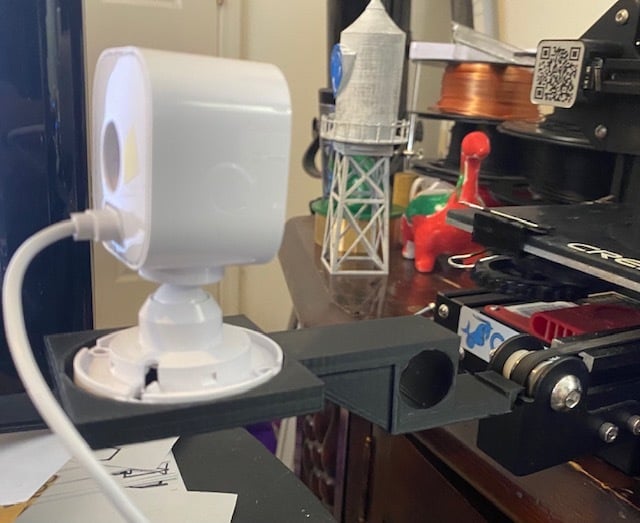 This camera mount is specifically designed to provide an optimal placement for your Blink Mini indoor camera on an Ender 3 3D printer. It eliminates the need for temporary solutions and offers a dedicated and stable mounting point for effective monitoring of your prints.