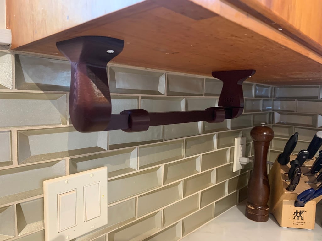 The holder is optimized to accommodate paper towels with a length of 11 inches and a diameter of 6 inches, so you can be sure of a good fit. The material, Prusa PLA in a mysterious brown shade, contributes a beautiful aesthetic that, with its woody effect and shifting colours in the light, adds a stylish touch to the room.