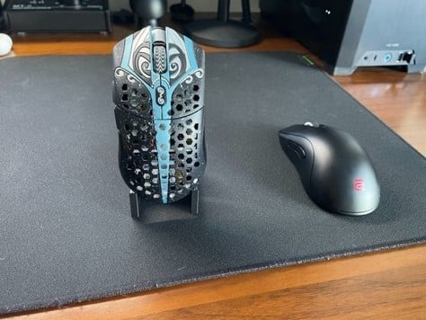 This display stand is designed to present your gaming mouse in an elegant and organized manner. It is an ideal solution for showcasing your favourite mice on a shelf or your desk, and it helps to keep your gaming setup tidy. The stand ensures that your mouse stands stably and is easy to spot, while protecting it from unnecessary wear and tear from lying around loose. The simple design easily integrates into most interiors, making it a practical addition for anyone who wants to display their equipment in a stylish way.