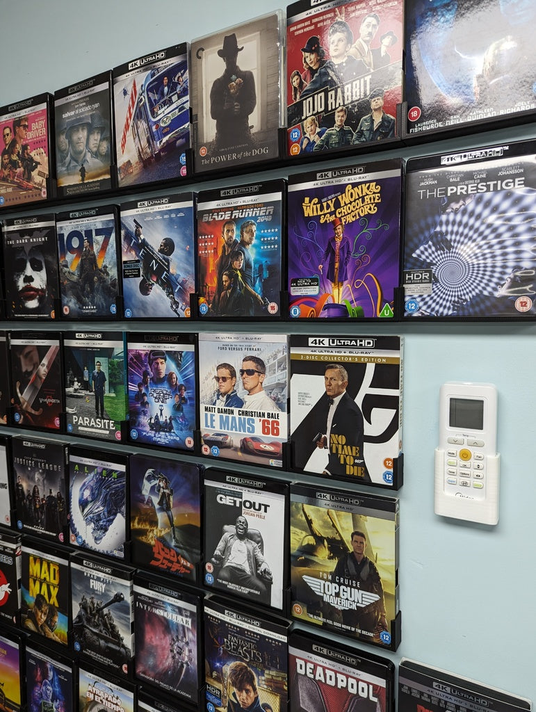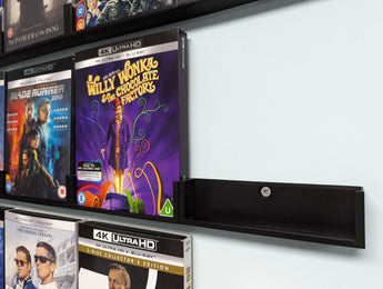 The wall mount is sized to fit standard Blu-ray 4K cases (135mm x 170mm x 15mm) while also offering some flexibility for cases with paper sleeves. With an intelligent locking system, multiple units can be connected, ensuring that your cases hang in a neat and straight row without leaning.
