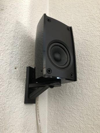 This wall mount is designed to optimize the placement of your surround sound speakers, especially those with a 'tripod' mount or bottom mount. It provides a secure and stable solution for hanging your speakers, which can significantly enhance the sound experience in your room. The mount is ideal for systems such as the ONKYO SKS-HT690 5.1 channel system and is compatible with speakers requiring a distance of approximately 55 mm from the wall to the mounting hole. With its robust construction, this wall mount ensures your speakers are firmly fixed. It is prepared for easy attachment with standard drywall screws, and an optional spacer is included to achieve the best fit for your specific speaker model. Get your speakers up to the perfect height and position with this practical tripod mount.