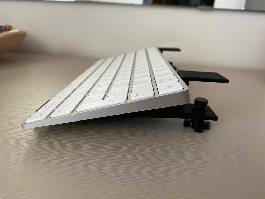 This universal stand is a practical solution designed to optimize your workspace. It is specifically developed for Apple keyboards and can accommodate models with a thickness between 20 and 26 mm. The stand provides a stable and secure base that elevates your keyboard to a more ergonomic angle, which can contribute to a more comfortable typing experience during long workdays. By lifting the keyboard, valuable space on your desk is simultaneously freed up, helping to keep your workstation organized and tidy.